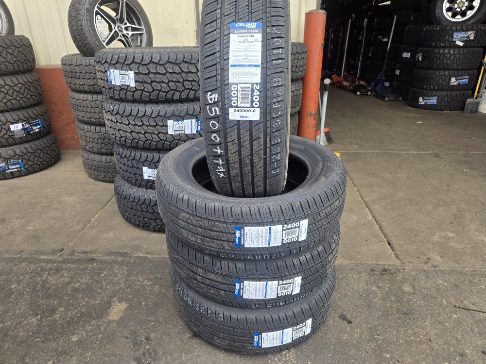 Brand new set of CELIMO SALIENT CS210 Size 235/60R18 . Free mount, balance, and brand new valve stems. $500+tax. Also check out our GOOGLE reviews to assure you're in good hands, just search (Oliver Tires) We also offer lots of other sizes new and used. Call or text for availability Espanol: 8016885139 Office: 8016620227 Or come visit us at 3010 west 500 south Salt Lake City Utah