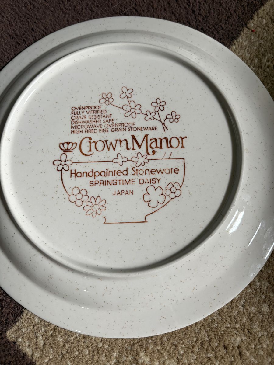 VenmoPart of the Crown Manor Springtime Daisy Stoneware Collection, made in Japan Perfect condition, never been used. 8 dinner plates 7 desert plates 7 desert bowls