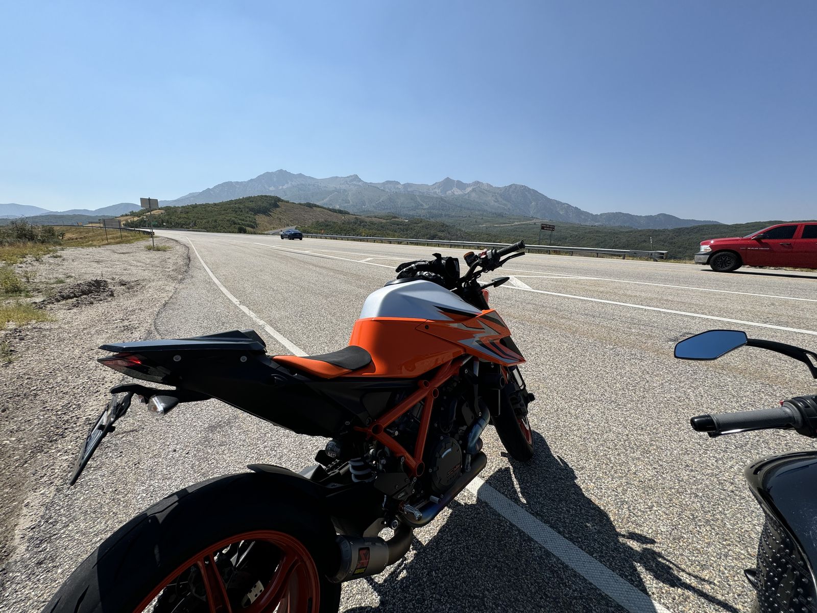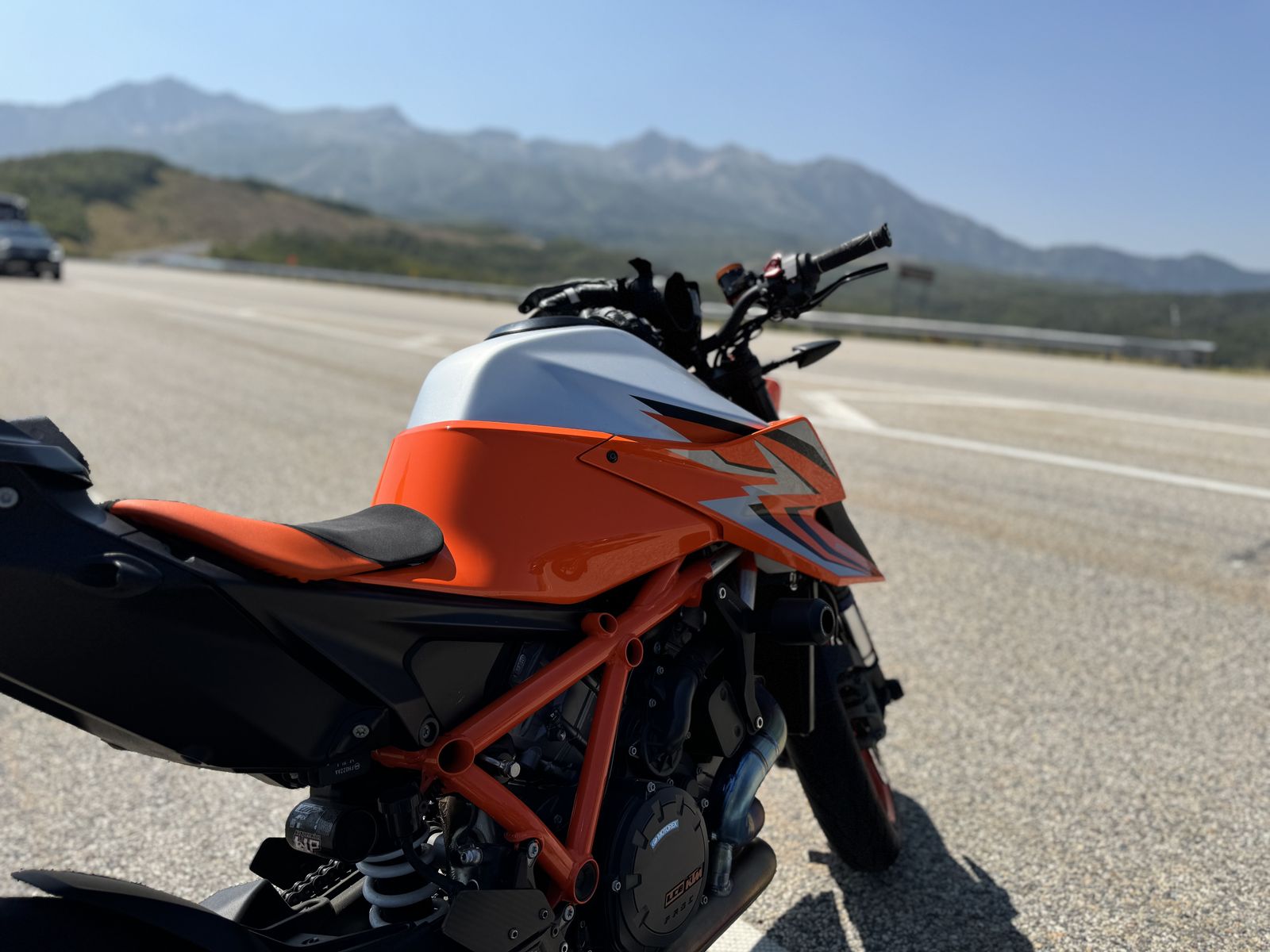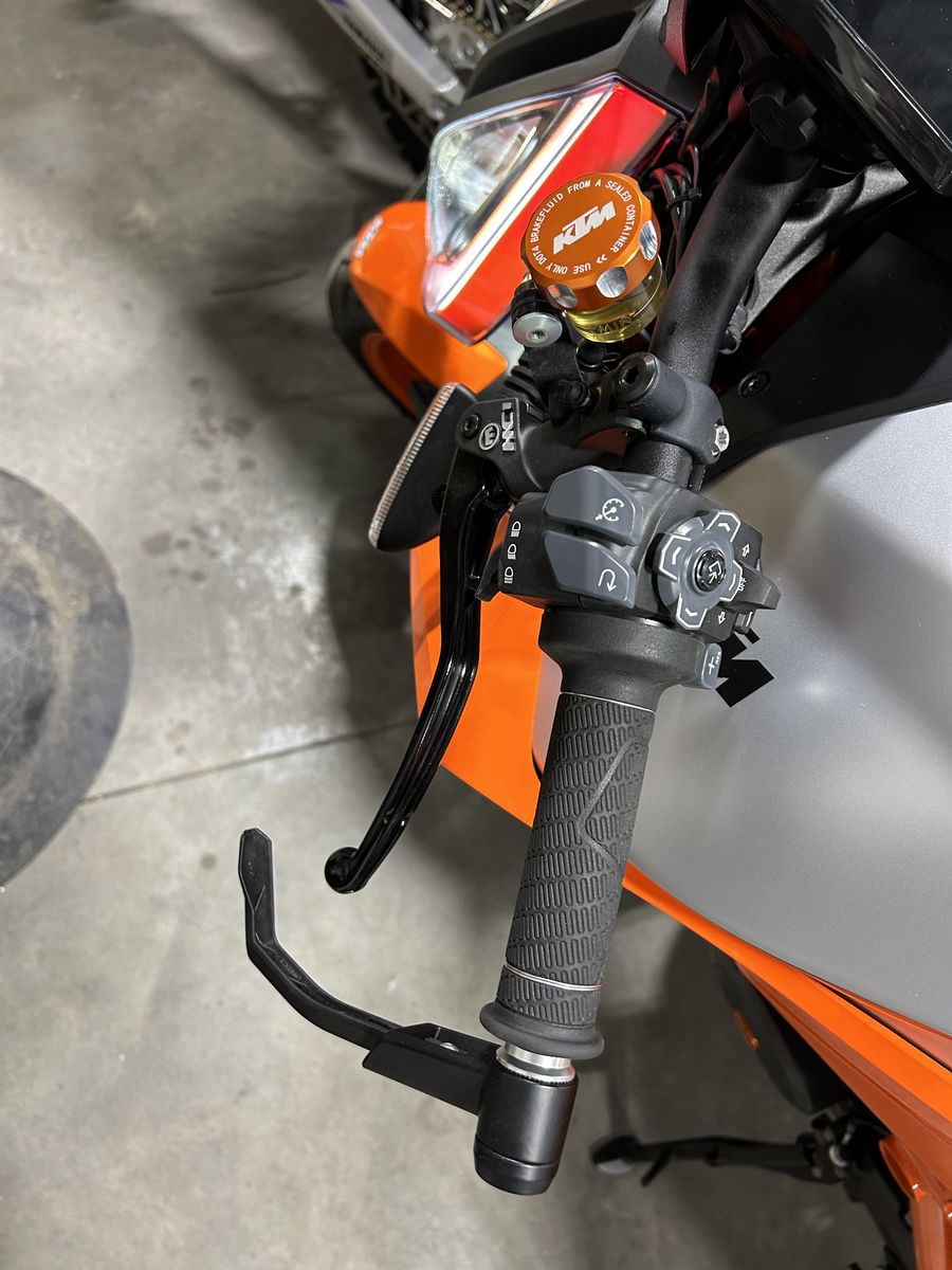 • KTM PowerParts Adjustable Rearsets: For better ergonomics and ground clearance. • Evotech Radiator Guard: Essential protection for Utah roads. • Crash Protection: Frame sliders and front axle sliders installed. • Bar End Mirrors: Cleans up the profile significantly