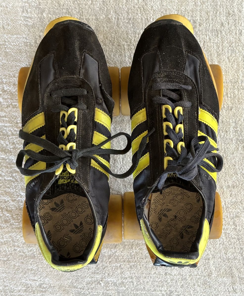 Very cool vintage Adidas Rollerskates. I don’t see a size listed anywhere but I wear a size 9 / 9.5 and these fit me perfectly.