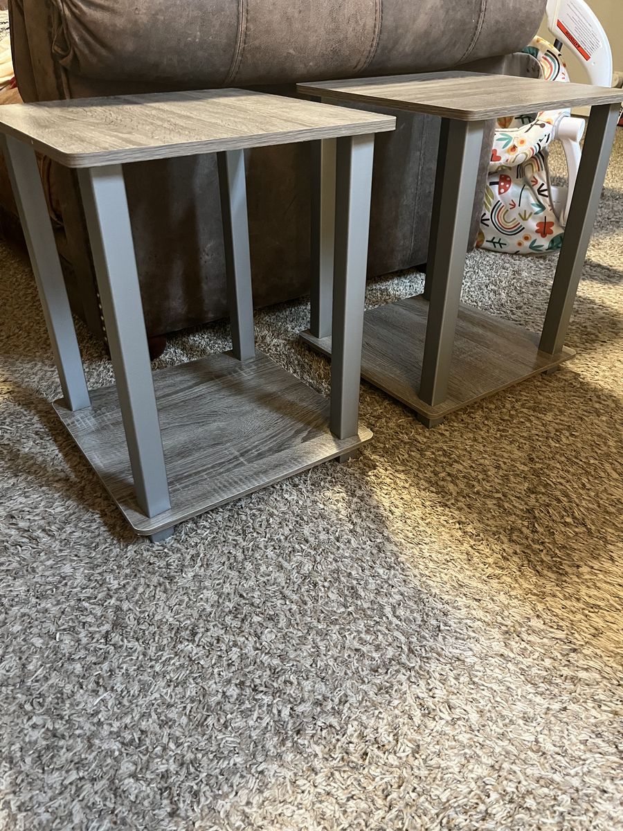 VenmoTwo grey faux wood side tables, brand new only assembled.