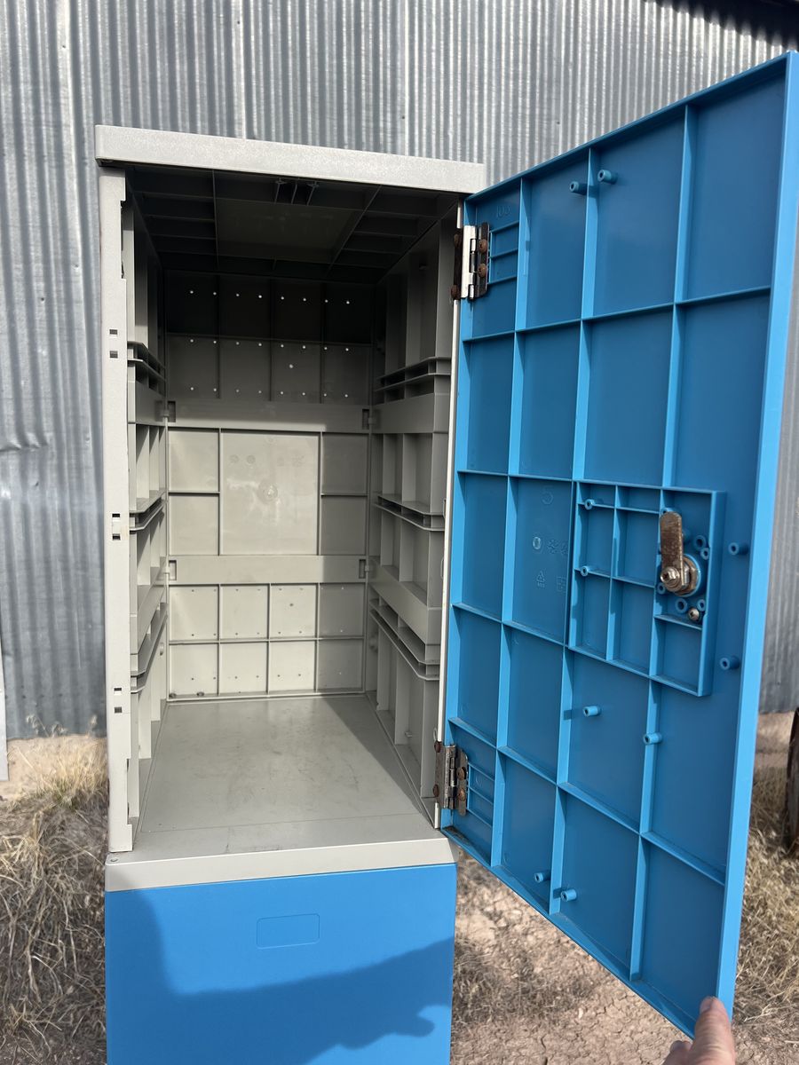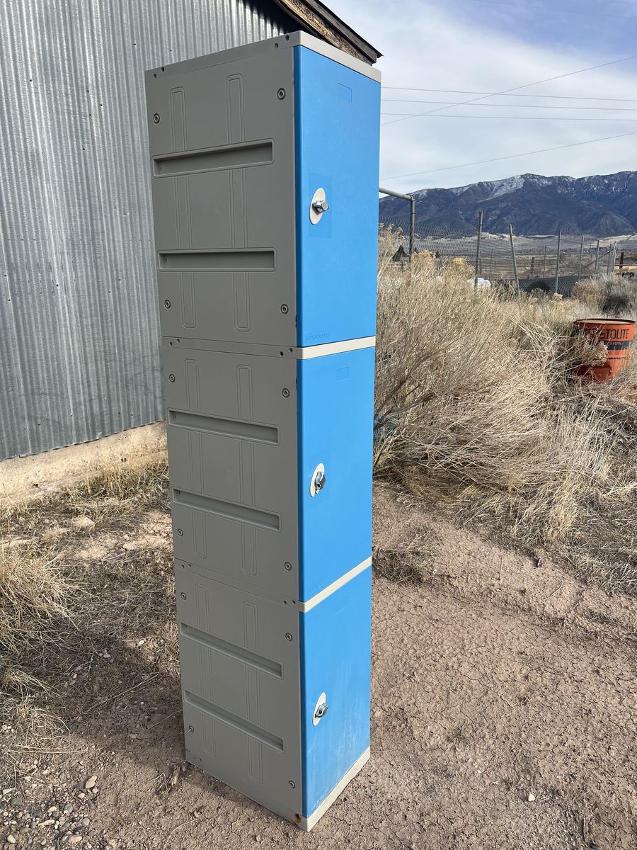 Lockers are 12 inches wide 16 inches deep and 6 feet tall all are in good shape. I have 30 of these units great for a shop garage or basement. There are slots inside to add more shelving. they are 350 Dollars new. Offers welcome