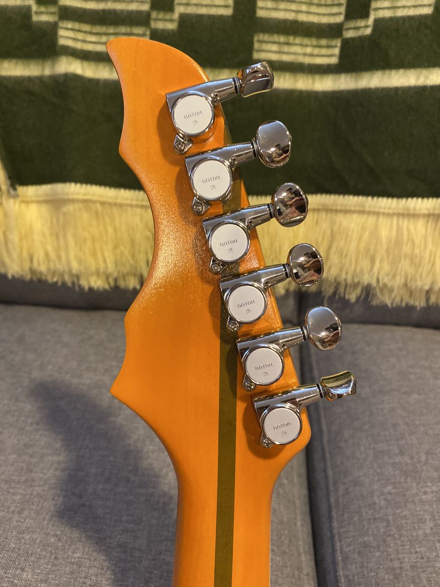 VenmoVery cool overseas made, Trey A. Style guitar. Plays great. I upgraded the tuners to GOTOH and bridge They’re much better. All notes work with lower style action. Cool electronics. In Logan can’t travel sorry.