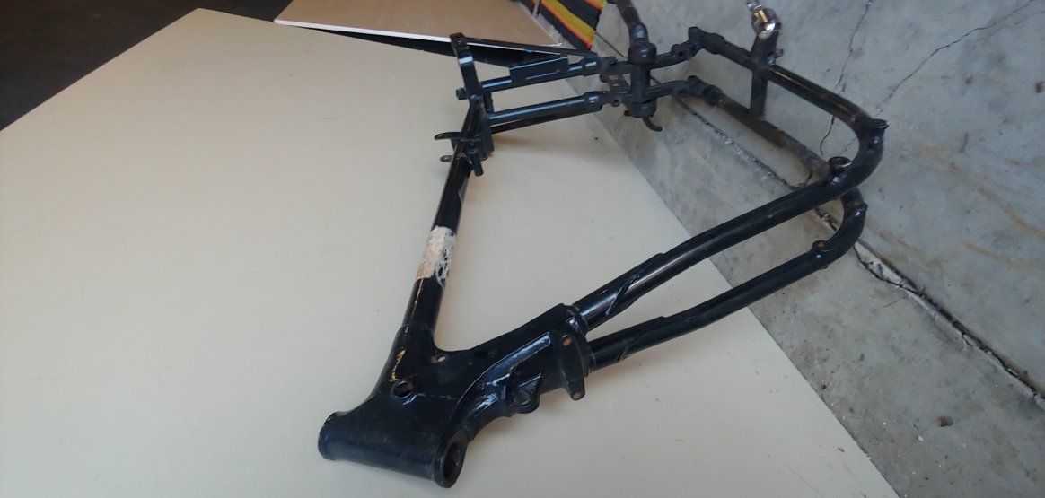 Extended Harley swing arm. With extended chain guard. Sportster frame, Iron Head Sportster 1980's