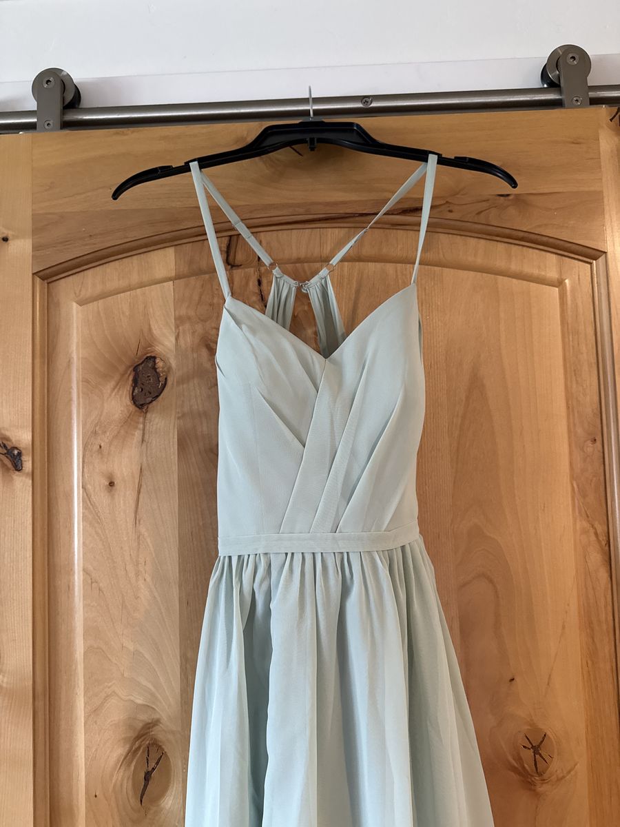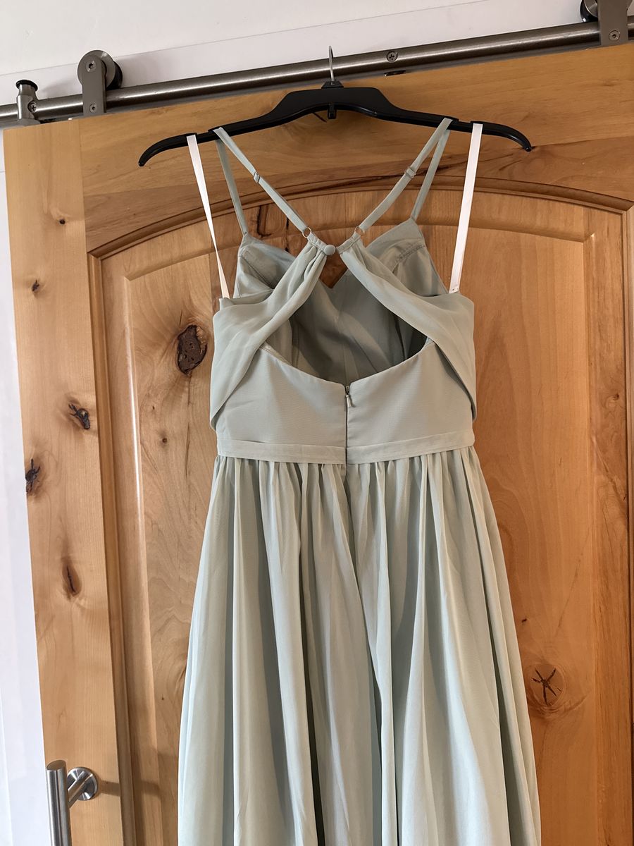 VenmoElegant A-line Long Sage Green Bridesmaid Dresses for Women with Side Slit Ruched Chiffon Formal Dresses with Pockets US 4. Only worn once, as new.