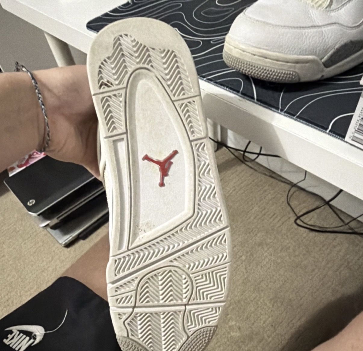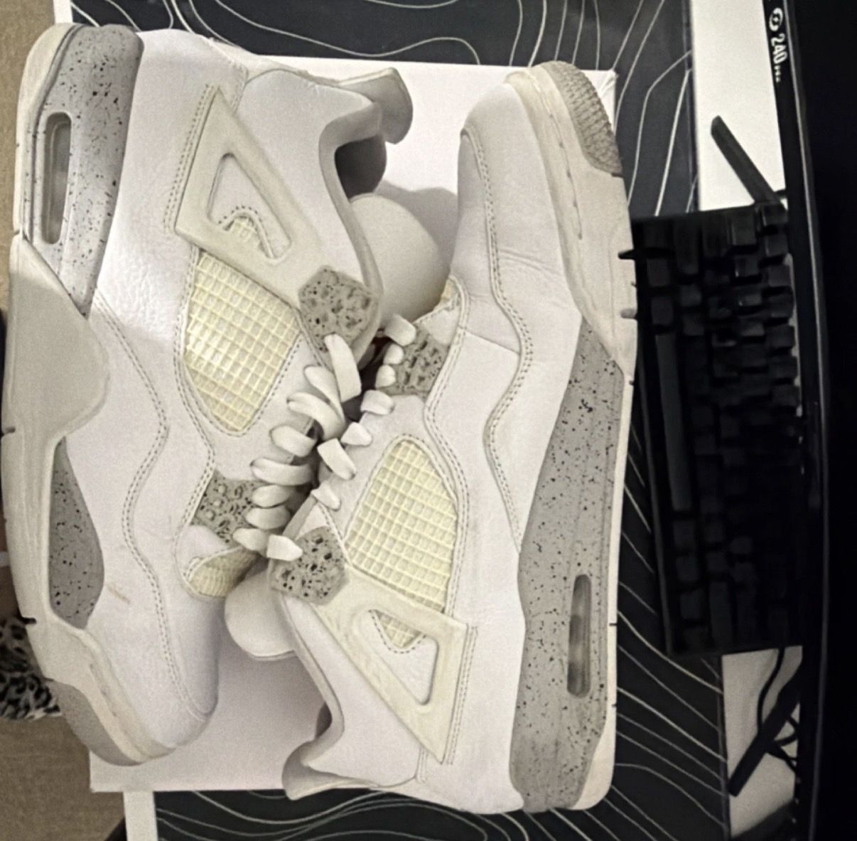 ApplePaySelling a pair of Air Jordan 4 White Oreo in men’s size 11. Classic Jordan 4 with the cement speckled grey midsole and wings. Shoes come with the original box.\
