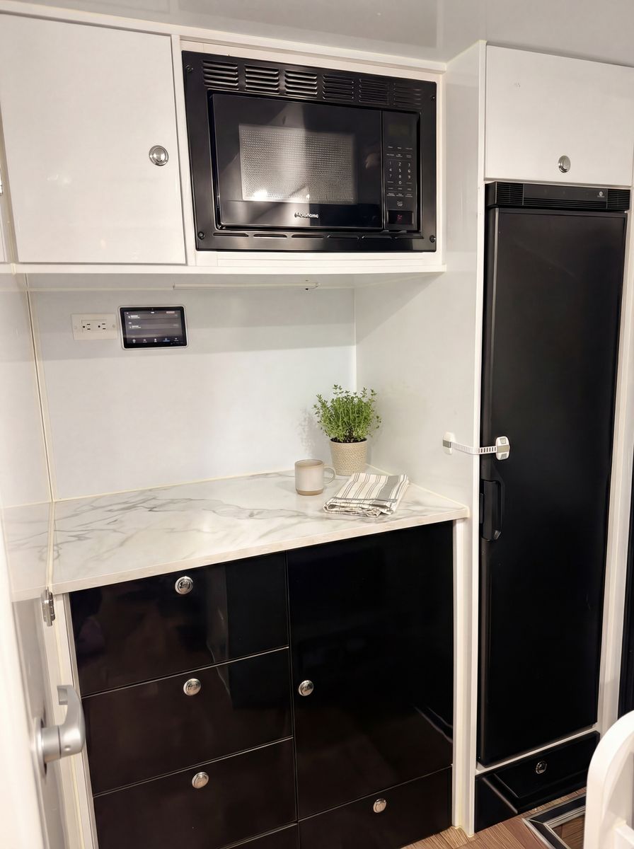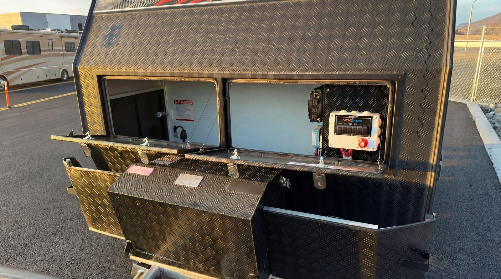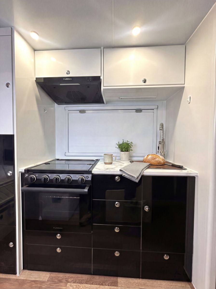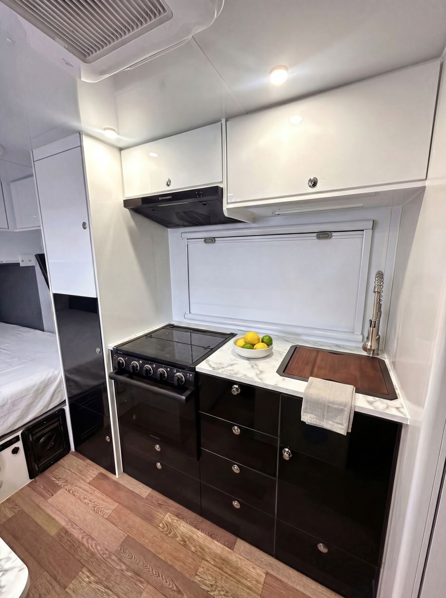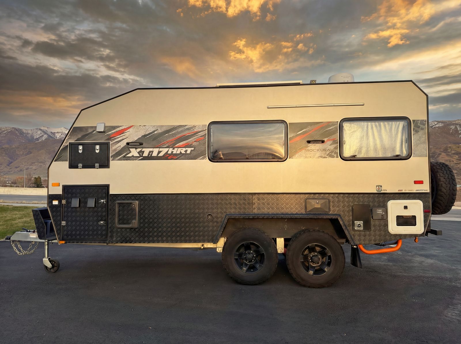 True off‑road independent suspension – handles washboards, rocks, and rough terrain with ease DO35 gyroscopic / articulating hitch – full range of movement for extreme angles and uneven terrain Solar panels with off‑grid power – stay off‑grid longer with factory solar keeping everything charged TWO full‑size spare tires – because real adventures don’t happen near tire shops Electric parking brake – secure, easy setup anywhere you stop Queen‑size bed – comfortable sleep after long days on the trail Slide‑out full‑size built‑in grill – outdoor cooking made simple, pulls right out the side Cassette toilet – clean, compact, and perfect for remote camping Heavy‑duty construction – built tough from the ground up for real off‑road use