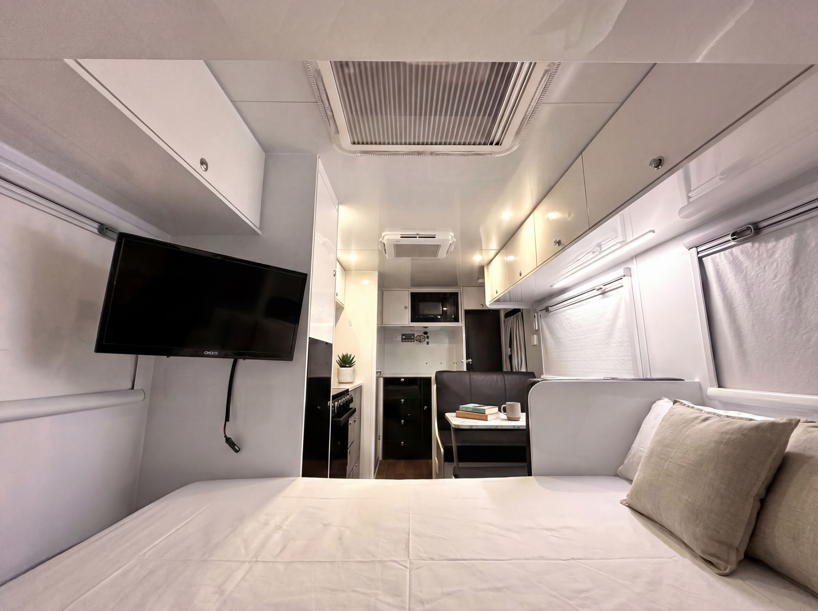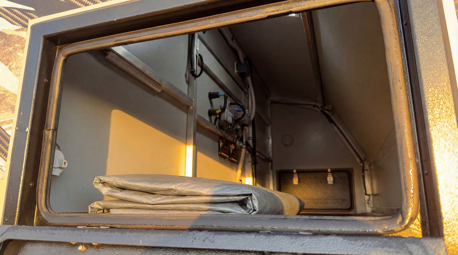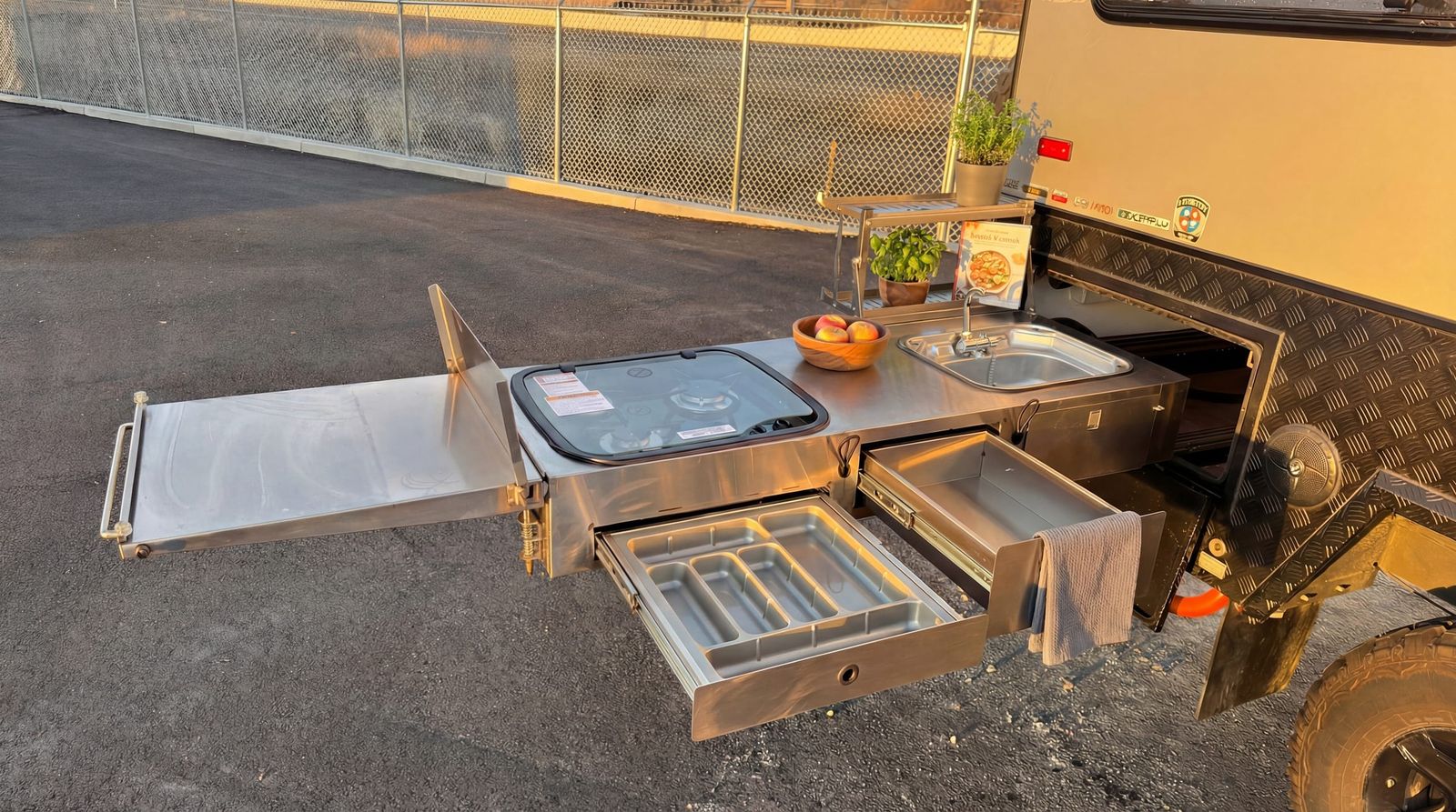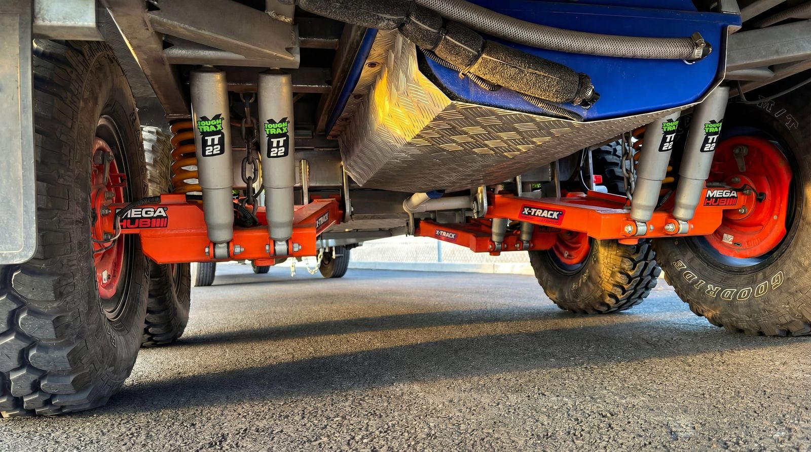 True off‑road independent suspension – handles washboards, rocks, and rough terrain with ease DO35 gyroscopic / articulating hitch – full range of movement for extreme angles and uneven terrain Solar panels with off‑grid power – stay off‑grid longer with factory solar keeping everything charged TWO full‑size spare tires – because real adventures don’t happen near tire shops Electric parking brake – secure, easy setup anywhere you stop Queen‑size bed – comfortable sleep after long days on the trail Slide‑out full‑size built‑in grill – outdoor cooking made simple, pulls right out the side Cassette toilet – clean, compact, and perfect for remote camping Heavy‑duty construction – built tough from the ground up for real off‑road use