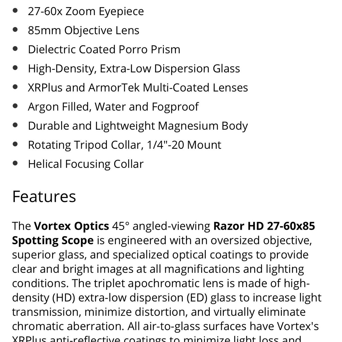 ApplePayVortex Razor HD Gen 2. 27-60x85 Highlights\
