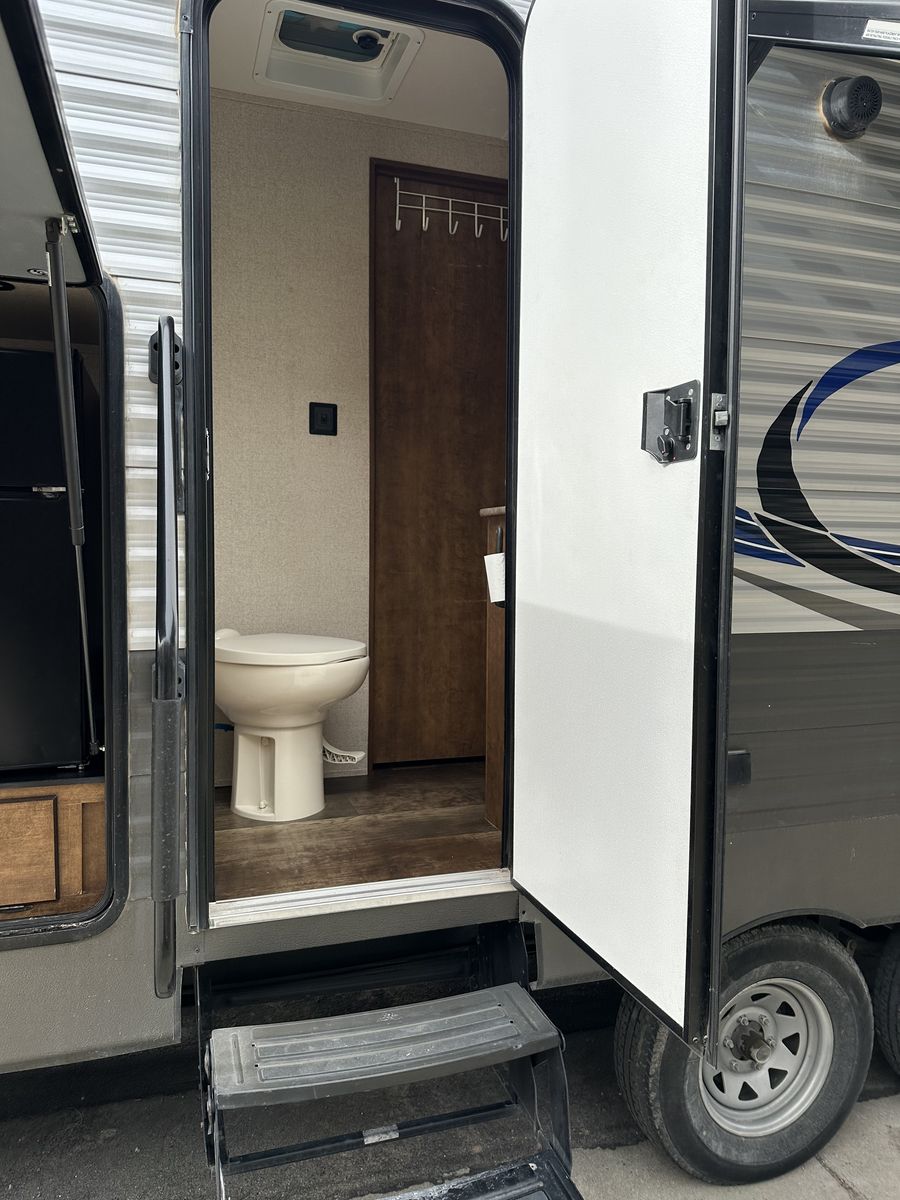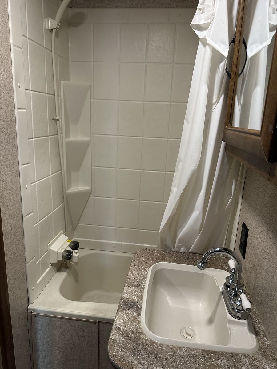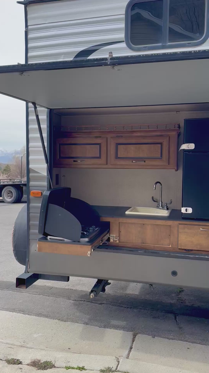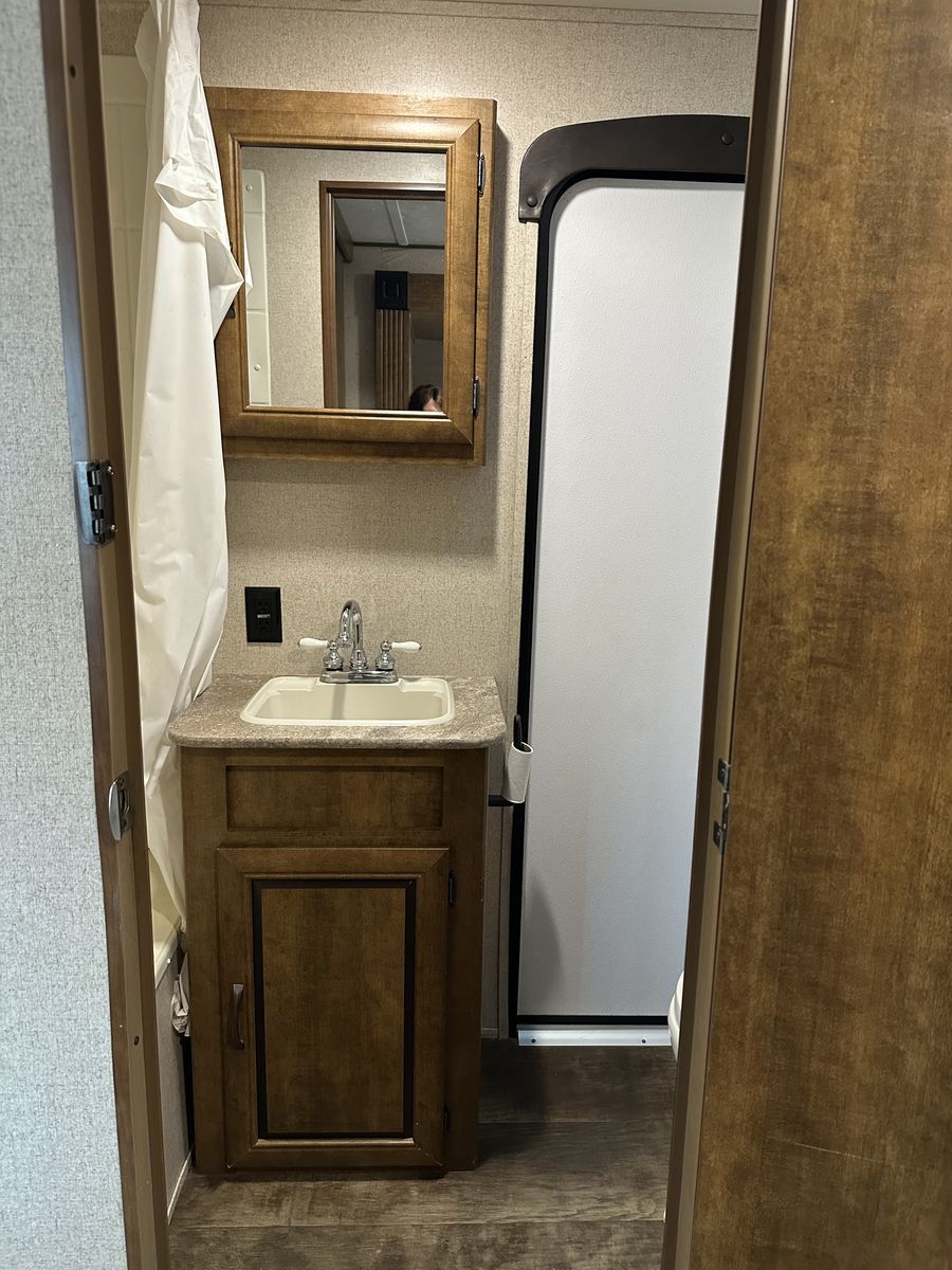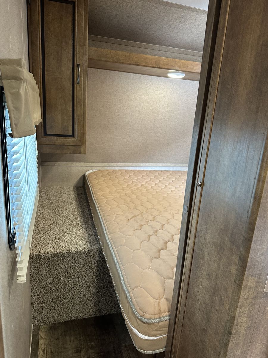 VenmoSleeps 10-12 people comfortably. Queen bed in front, doors going to each side of the bed for easy access. Couch turns into bed, with storage under couch. Cupboards above couch, table goes into bed, with storage under the benches. Kitchen has tons of cupboards, a large pantry. Closet for towels and other things. Bunk house in the back with a couch turning into bed, a pull out under couch, top bunk above couch, bunk above outdoor kitchen and smaller bed in the back. TV and DVD player in back room with storage under TV. Storage under back bed. Put in the TV that rotates so you can watch it in the bedroom or living area, mirror on reverse side. Outdoor kitchen with a quick connect on propane, cupboards above with storage going on top, outdoor fridge with storage below it. Awing is electric with no tears. Door leading to the bathroom so nobody walks through your trailer. Added a back up camera, added power switch to turn off the batteries so it won’t pull power when storing. Replaced and put a new electric jack in front. Put the grabber bars on both outside doors for kids to reach and get in. Put handle on inside door to close easier. Packed bearings this last year. Tires are two years old, with spare tire on back. Outdoor shower. Large cubby in front. This is a 36 1/2 Ft trailer, planning on selling the sway bar with trailer. It’s a beautiful must see trailer.