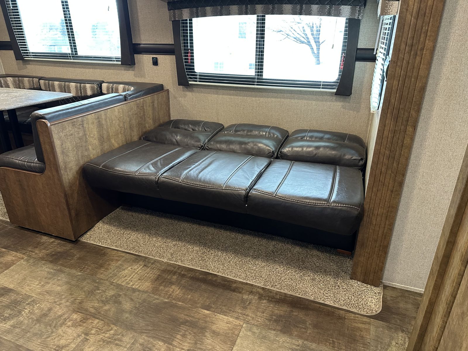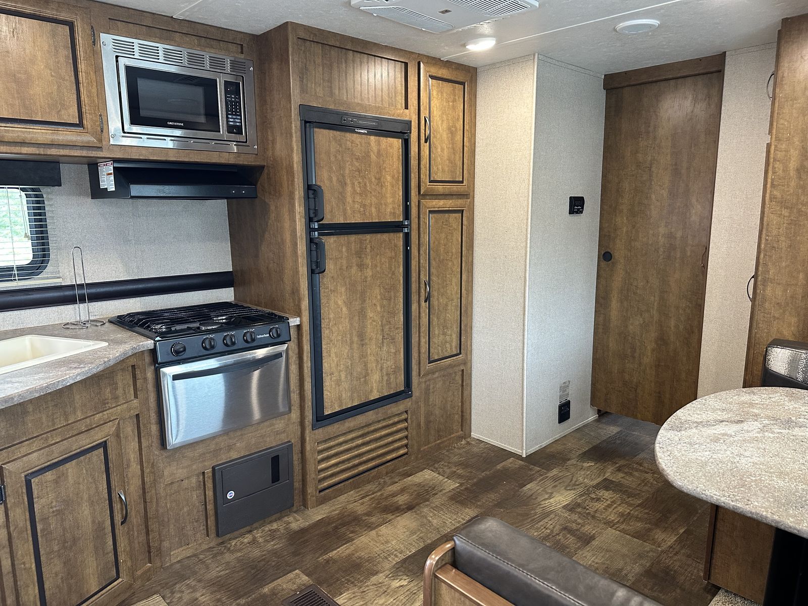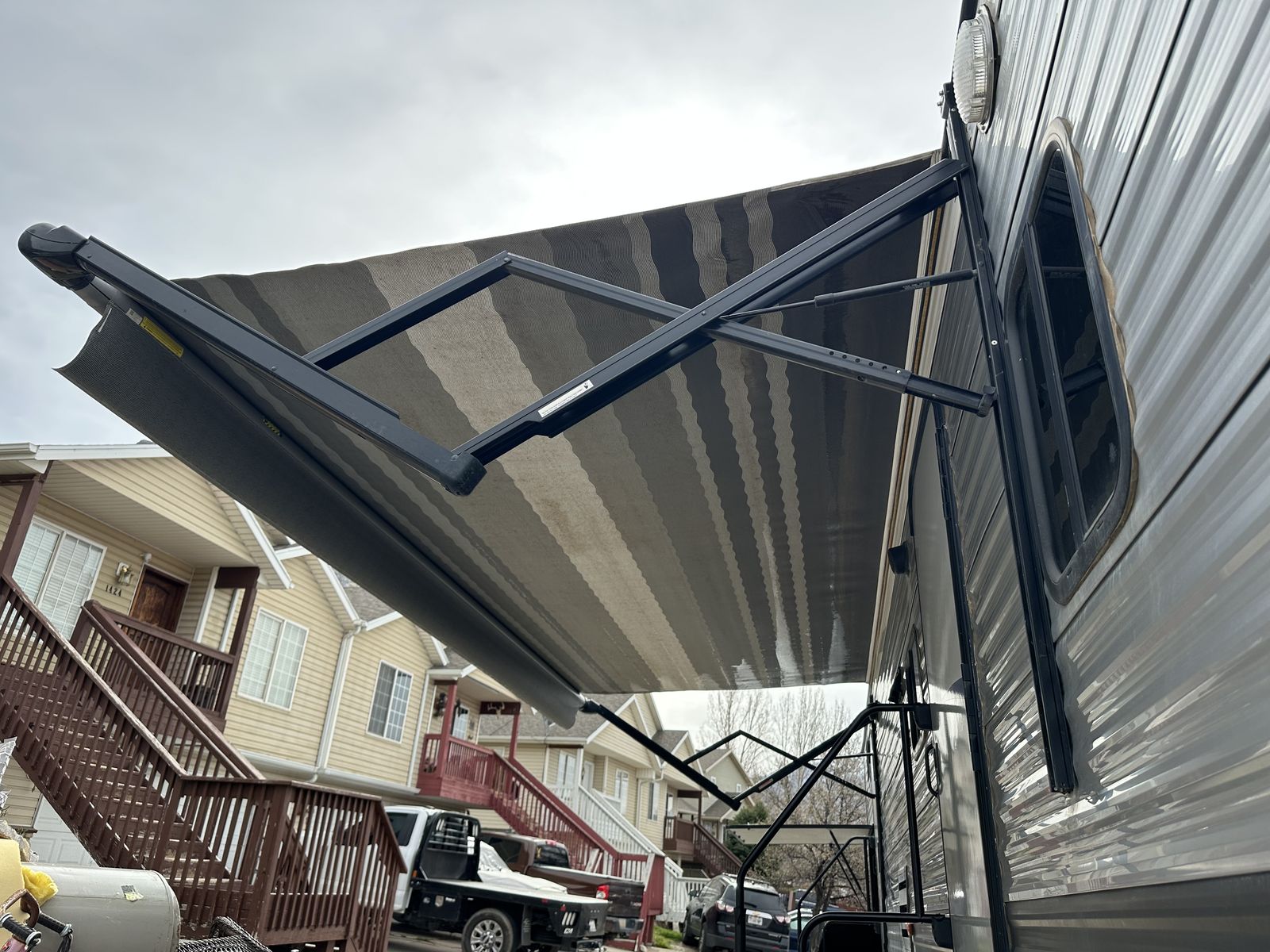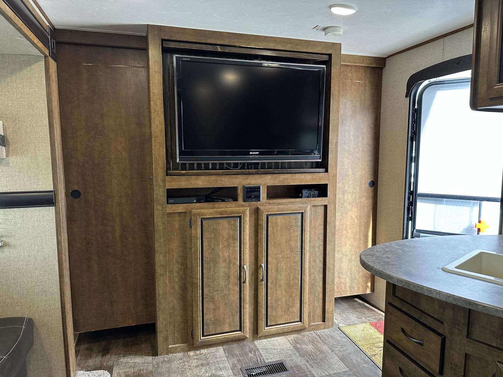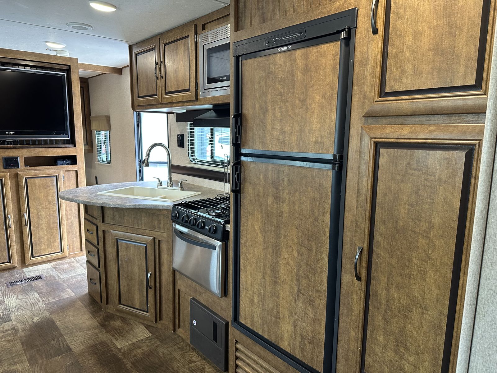 VenmoSleeps 10-12 people comfortably. Queen bed in front, doors going to each side of the bed for easy access. Couch turns into bed, with storage under couch. Cupboards above couch, table goes into bed, with storage under the benches. Kitchen has tons of cupboards, a large pantry. Closet for towels and other things. Bunk house in the back with a couch turning into bed, a pull out under couch, top bunk above couch, bunk above outdoor kitchen and smaller bed in the back. TV and DVD player in back room with storage under TV. Storage under back bed. Put in the TV that rotates so you can watch it in the bedroom or living area, mirror on reverse side. Outdoor kitchen with a quick connect on propane, cupboards above with storage going on top, outdoor fridge with storage below it. Awing is electric with no tears. Door leading to the bathroom so nobody walks through your trailer. Added a back up camera, added power switch to turn off the batteries so it won’t pull power when storing. Replaced and put a new electric jack in front. Put the grabber bars on both outside doors for kids to reach and get in. Put handle on inside door to close easier. Packed bearings this last year. Tires are two years old, with spare tire on back. Outdoor shower. Large cubby in front. This is a 36 1/2 Ft trailer, planning on selling the sway bar with trailer. It’s a beautiful must see trailer.