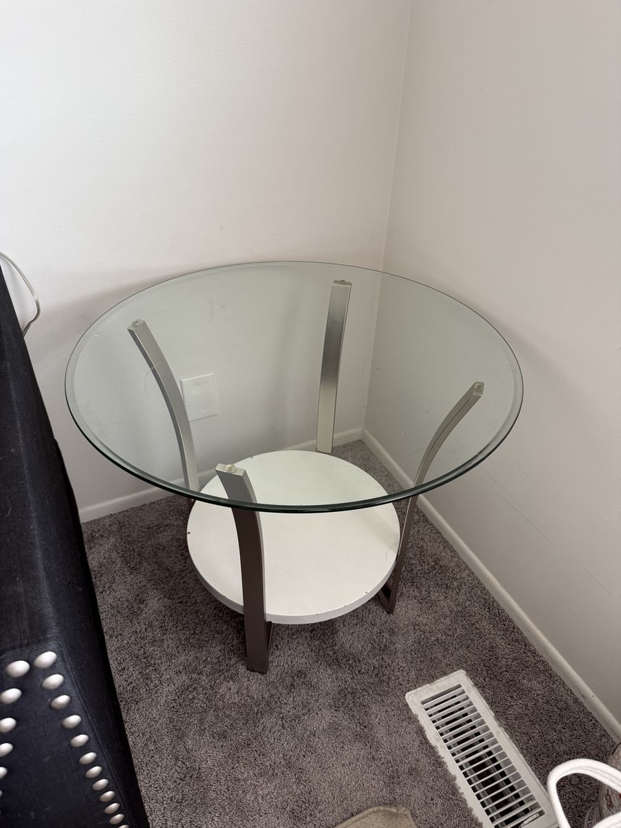 Round glass coffee table and end table