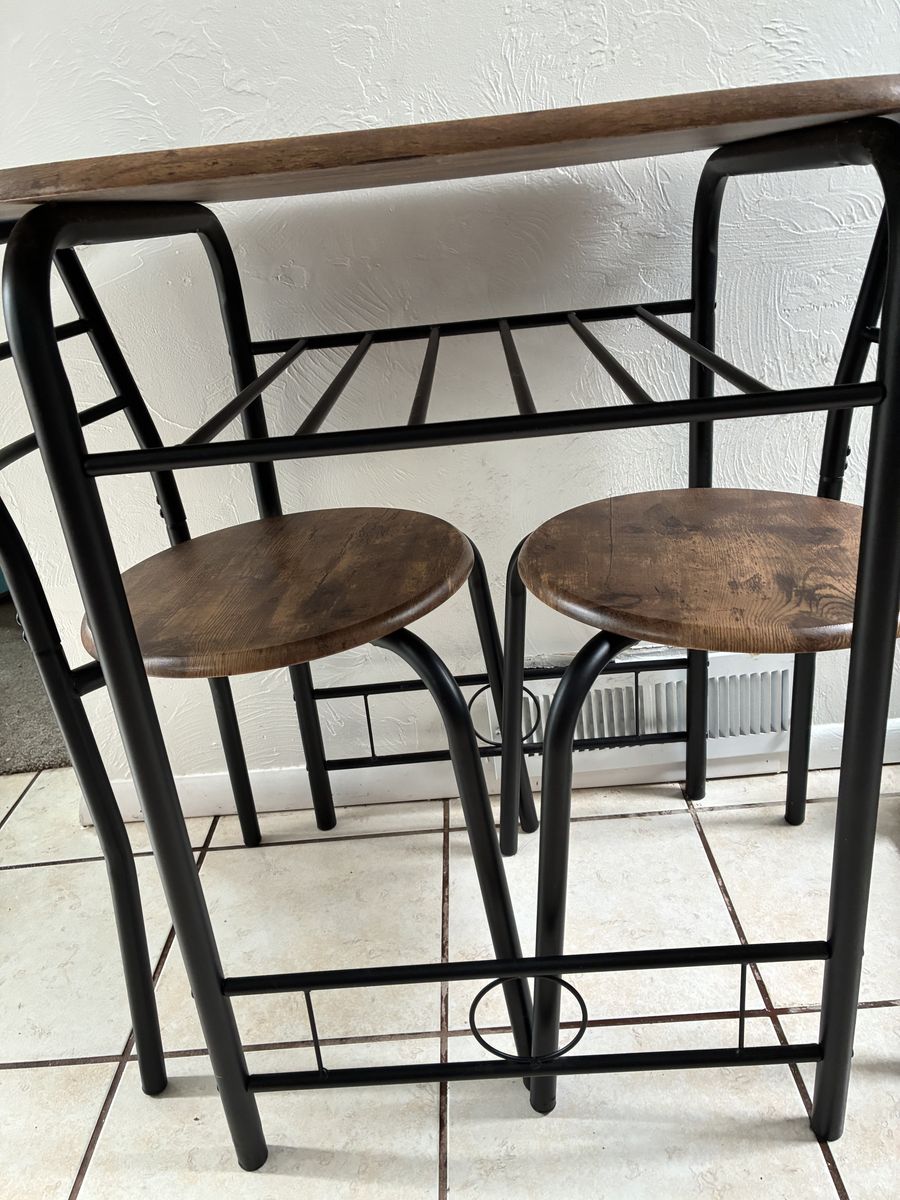 A simple, practical space for your daily meals. This compact table set is designed for everyday use. It offers a sturdy surface for your small appliances and enough room for a comfortable, quiet dinner. • Space-Saving: Fits easily into any corner or small kitchen. • Durable: Easy-to-clean surfaces built for regular use. • Functional: A straightforward design that gets the job done. Simple furniture for a simple meal.