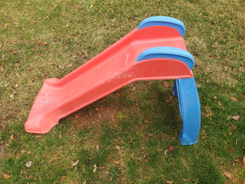 Little Tikes First Slide, a classic brightly colored children's slide suitable for both indoor and outdoor use Designed to be folded for easy travel and compact storage.