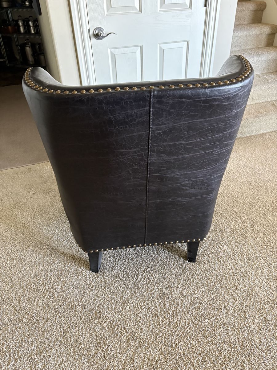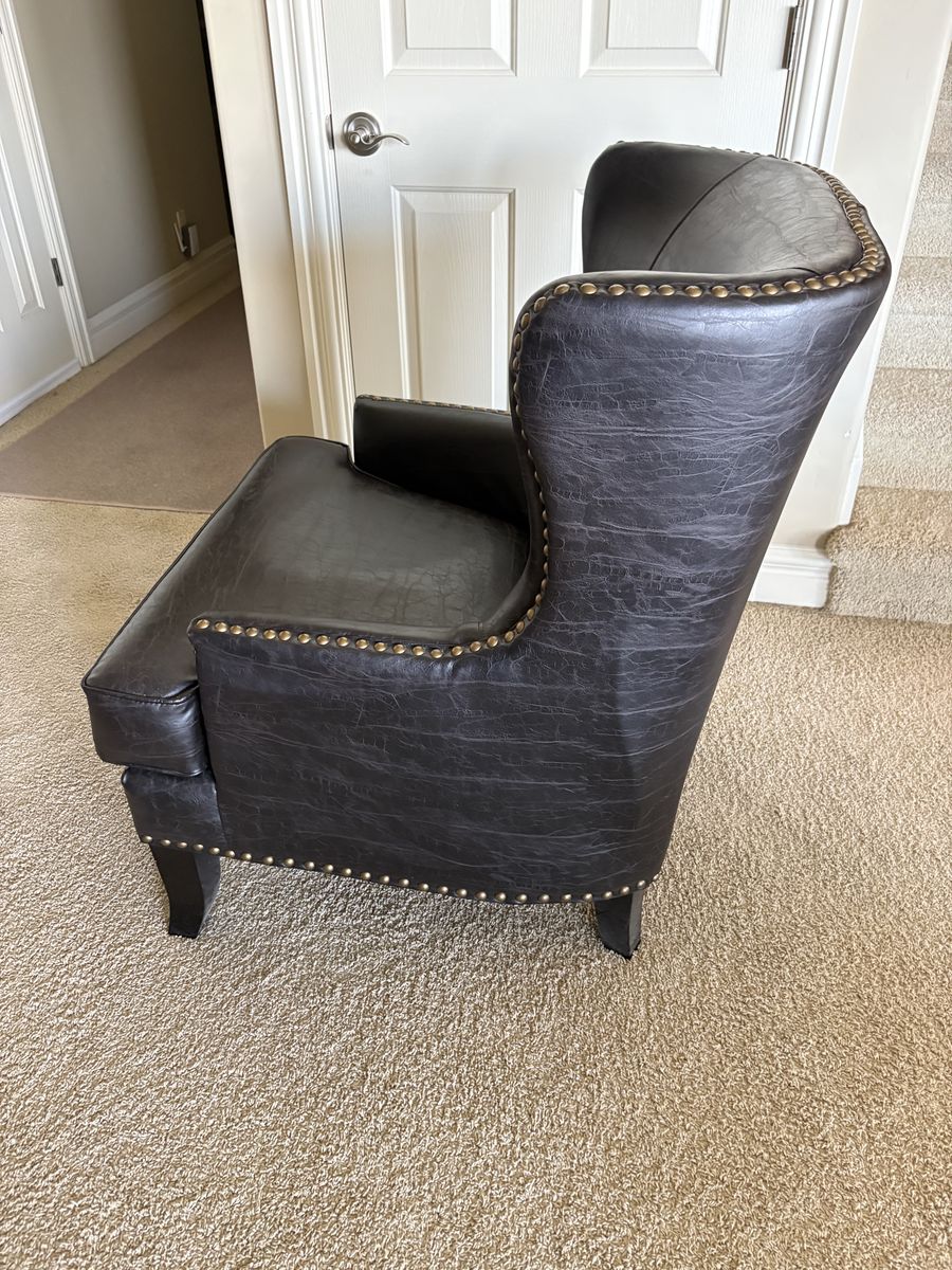 VenmoPorter Designs Grant Black crackle bonded leather Accent Chair. Measures 30” wide x 30” deep x 38” tall back. Floor to seat is 20” tall. $350 cash/venmo in Draper