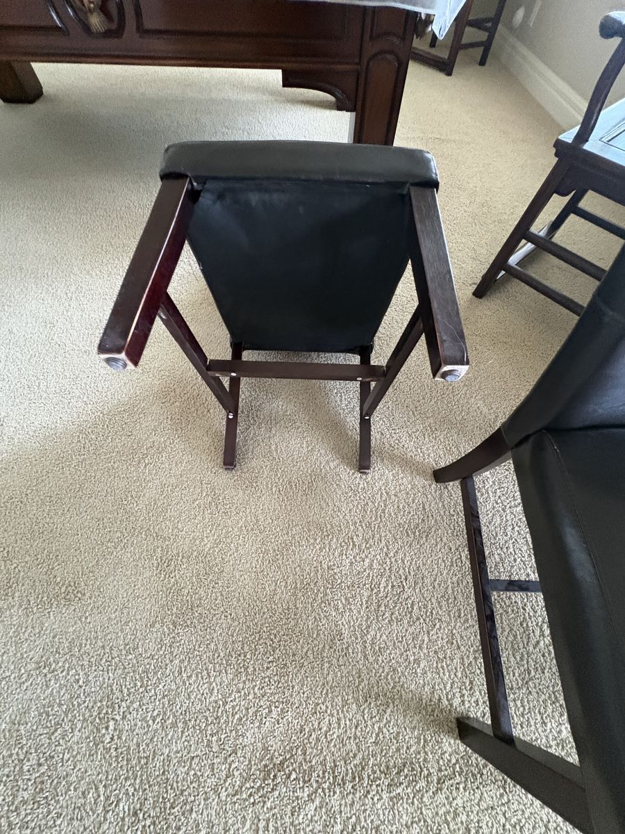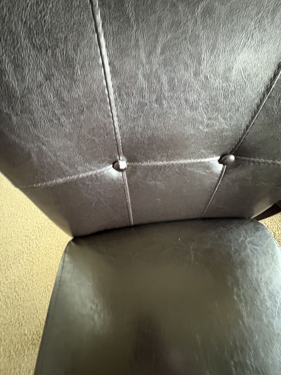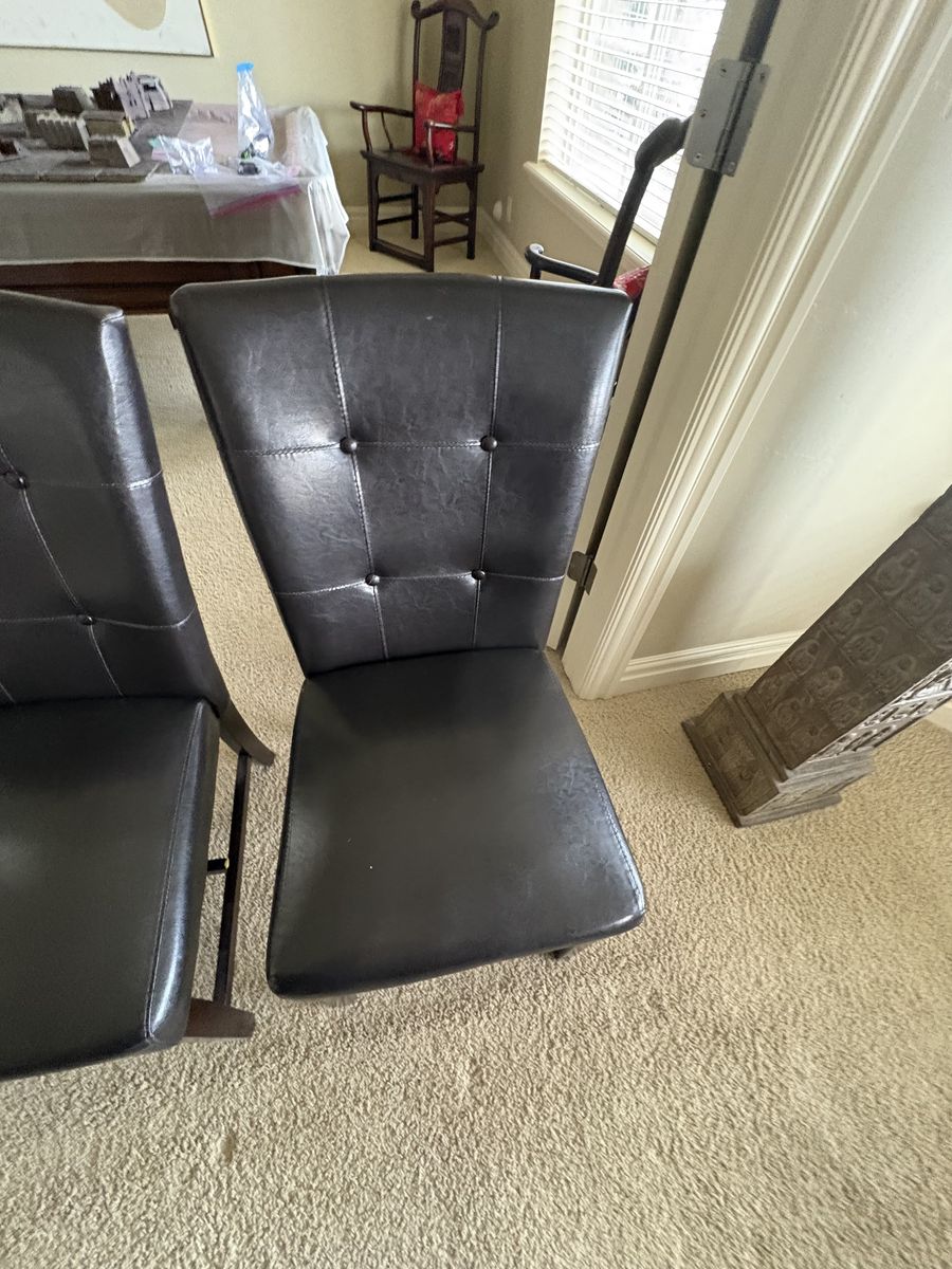 VenmoSet of 2 Brown leather table accent chairs. Chairs measure 38” tall back x 20.5” wide x 22” deep. $80 cash/venmo in Draper