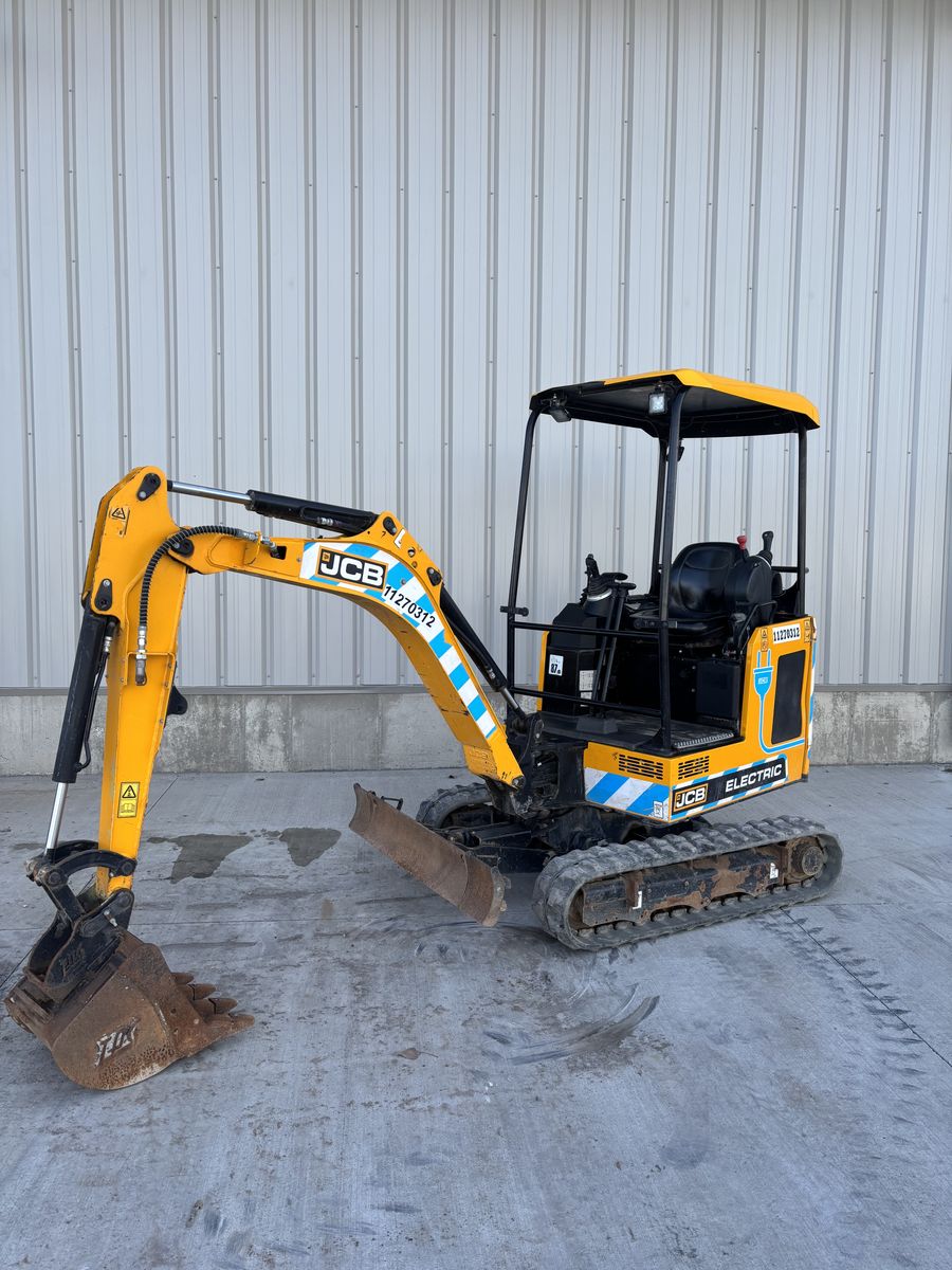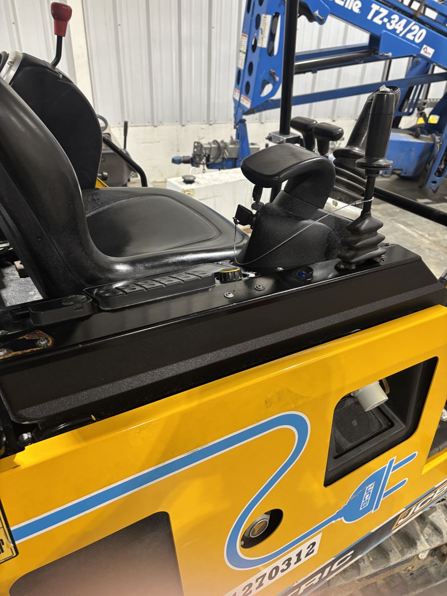 Electric JCB mini ex, it’s a 2021 19 –E 1 with only 650 hours.  It has an 18 inch digging bucket and can dig 9 feet deep. It has retractable tracks and front blade so you can adjust how wide you are to fit through gates. It runs amazing and is in great shape. It is 4400 pounds.