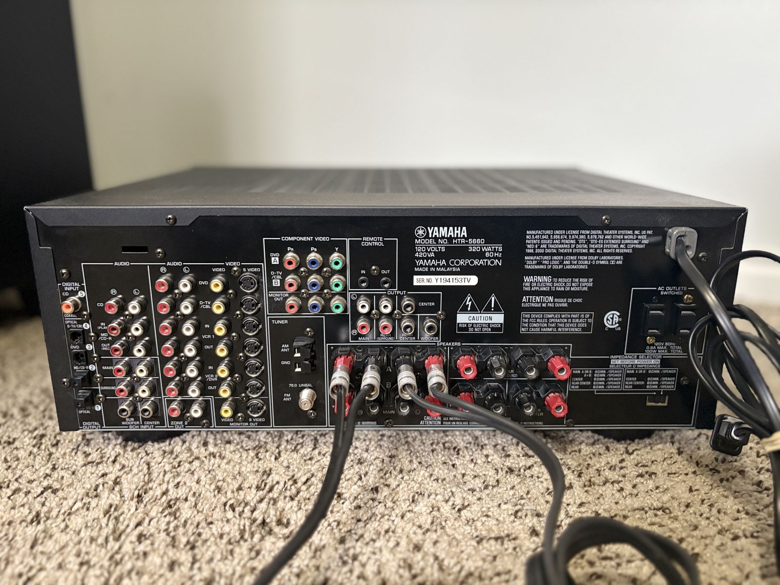 Venmo-Yamaha HTR-5660 Receiver (see pic for features) -Klipsch KSW-12 120V Subwoofer \