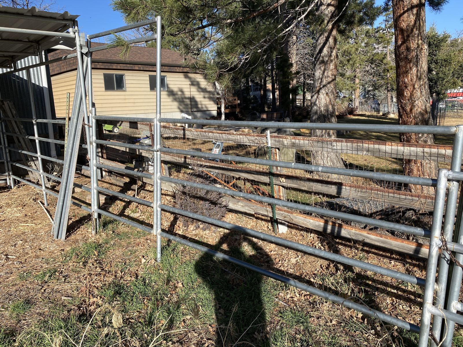 10’x10’ Galvanized shelter with gated panel and standing seam roof. In good shape, no bent pipes or damage. We have all the hardware for assembly (currently disassembled).