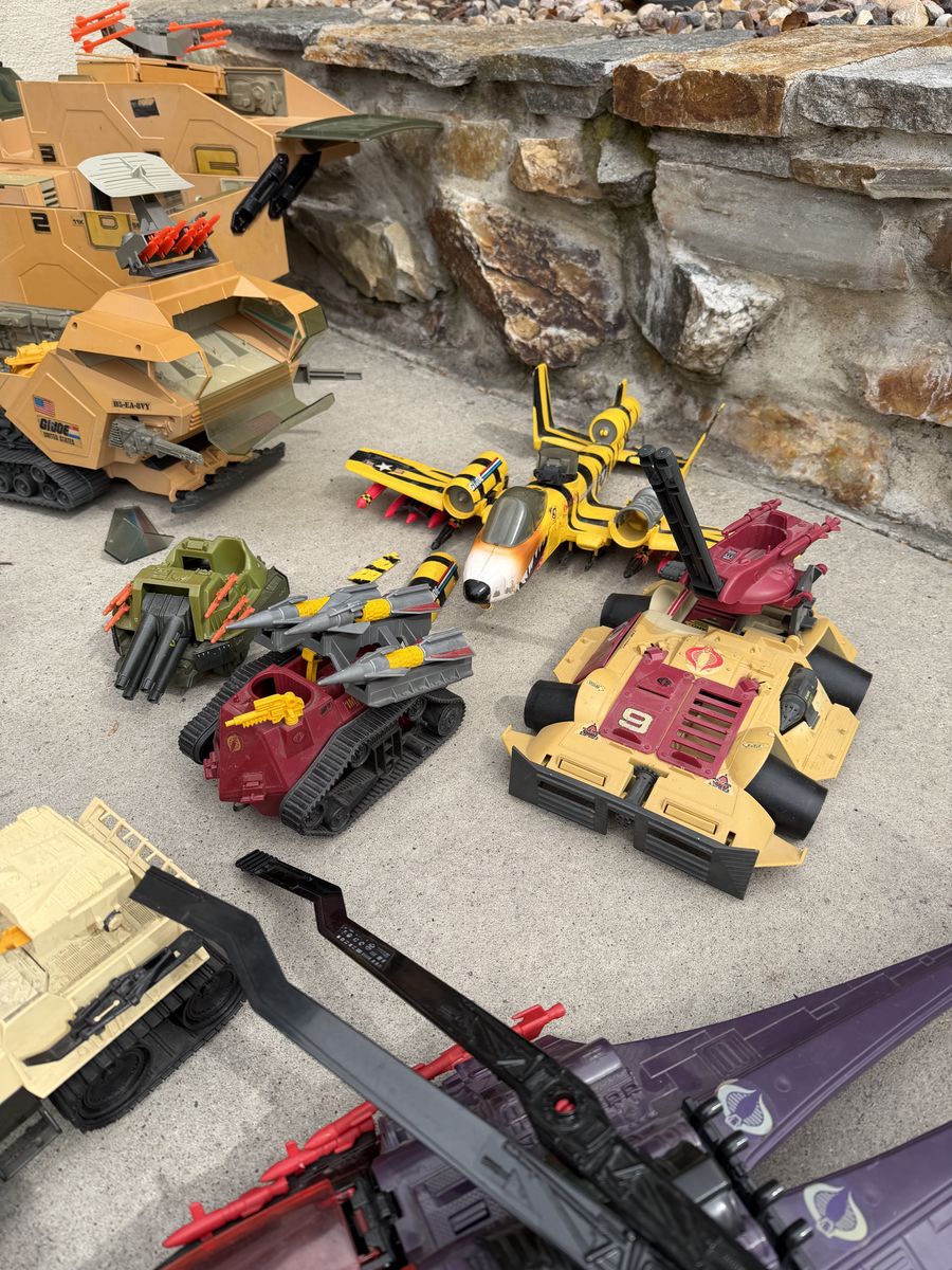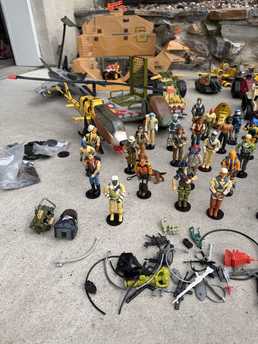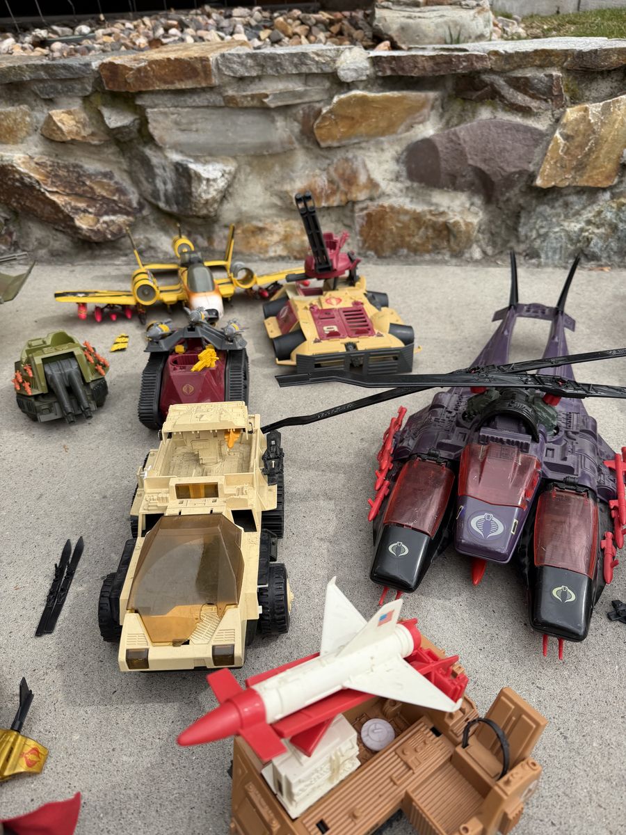 VenmoI hate to do it. But it’s finally time to sell my G.I .Joe collection. They are all approximately 40 years old. They’re in good shape for the age, most sets are fully complete. I have replaced all the figures band. Selling as a group, including all vehicles, figures, accessories, and repair kits. What’s included 87’ mobile command center 86’conquest X-30 fighter plane 88’ tiger force tiger fly helicopter 87’ Cobra sea ray 89’ Artic blast vehicle 88’ Tiger force Tiger Paw ATV 87’ SLAM 85’ snow cat vehicle 88’ Cobra IMP 88’ Tiger Rat 90’ Cobra rage urban assault vehicle 87’ cobra mamba helicopter 89’ Avalanche snow tank 87’ Cobra Pogo ballistic battle ball 88’ Destro’s Despoiler 89’ Darklon’s Evader 88’ RPV 86’ Cobra Serpentor’s air chariot 88’ lazer force tank 38 figures with their accessories Also big bin to carry them all