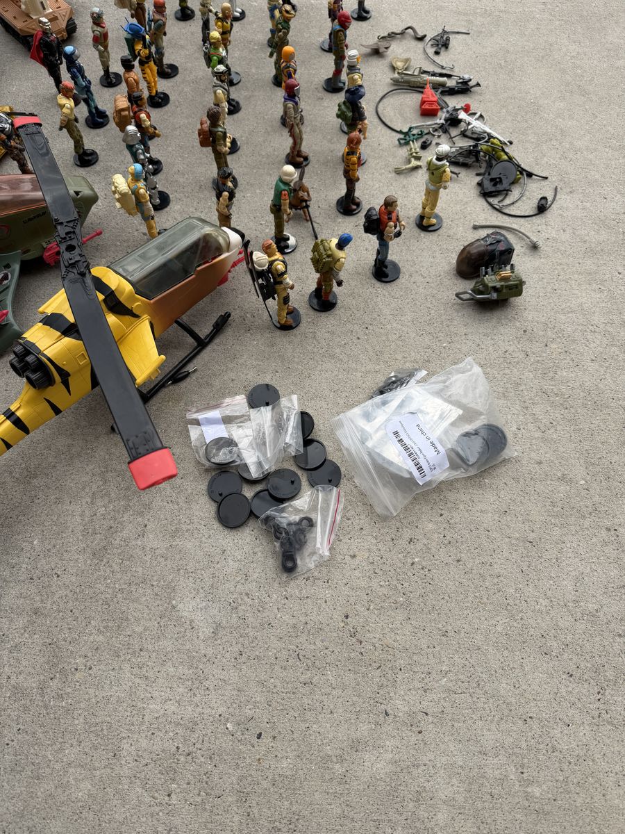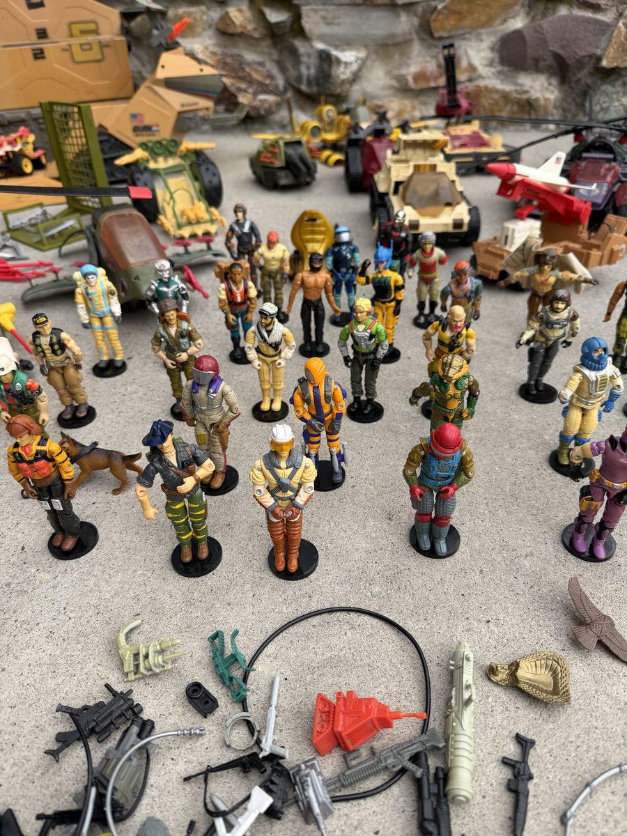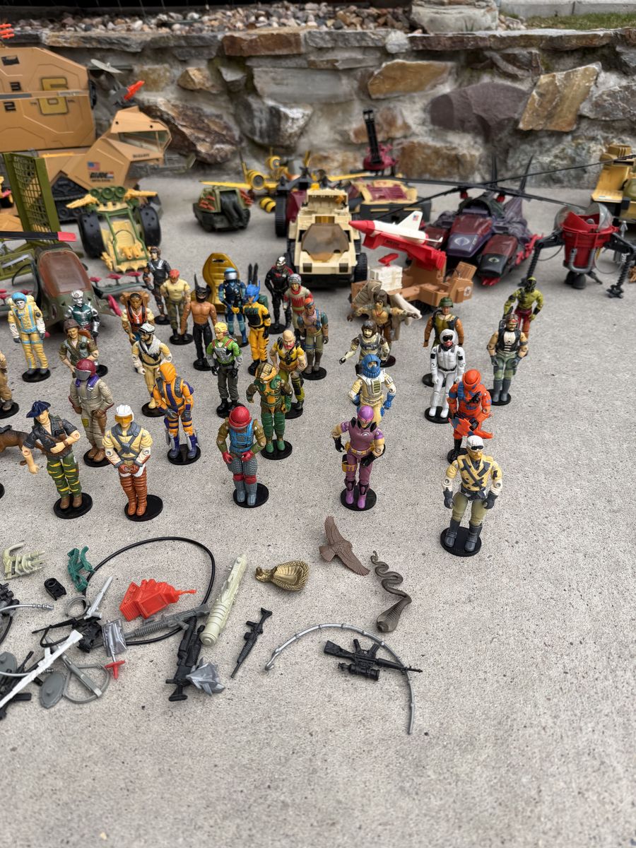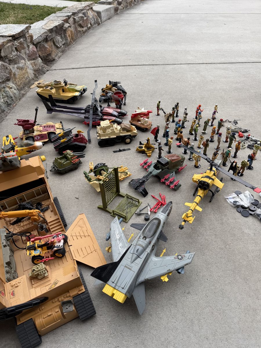 VenmoI hate to do it. But it’s finally time to sell my G.I .Joe collection. They are all approximately 40 years old. They’re in good shape for the age, most sets are fully complete. I have replaced all the figures band. Selling as a group, including all vehicles, figures, accessories, and repair kits. What’s included 87’ mobile command center 86’conquest X-30 fighter plane 88’ tiger force tiger fly helicopter 87’ Cobra sea ray 89’ Artic blast vehicle 88’ Tiger force Tiger Paw ATV 87’ SLAM 85’ snow cat vehicle 88’ Cobra IMP 88’ Tiger Rat 90’ Cobra rage urban assault vehicle 87’ cobra mamba helicopter 89’ Avalanche snow tank 87’ Cobra Pogo ballistic battle ball 88’ Destro’s Despoiler 89’ Darklon’s Evader 88’ RPV 86’ Cobra Serpentor’s air chariot 88’ lazer force tank 38 figures with their accessories Also big bin to carry them all