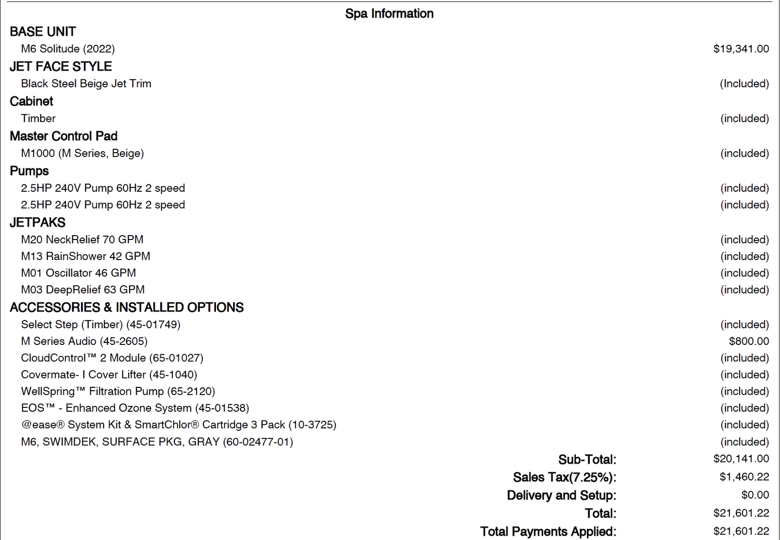 ApplePayThis Bullfrog Spas M6 is a 2022 with light useage and is really a great hot tub. We dont use it since we have an inground pool with hot tub that we end up using.