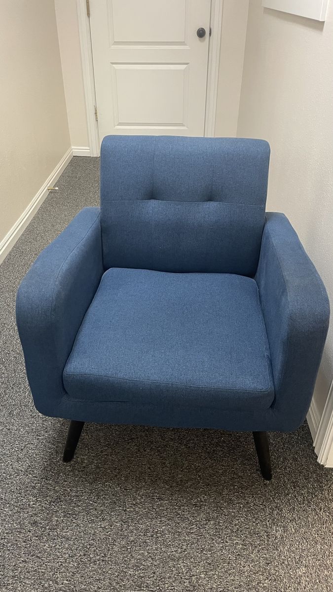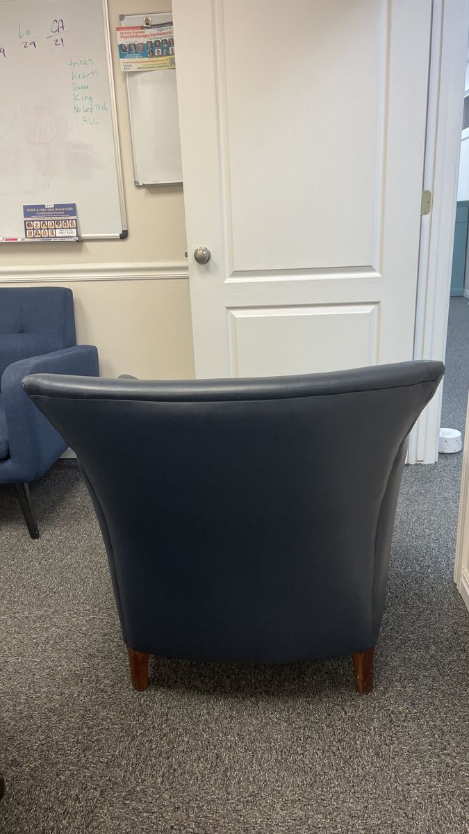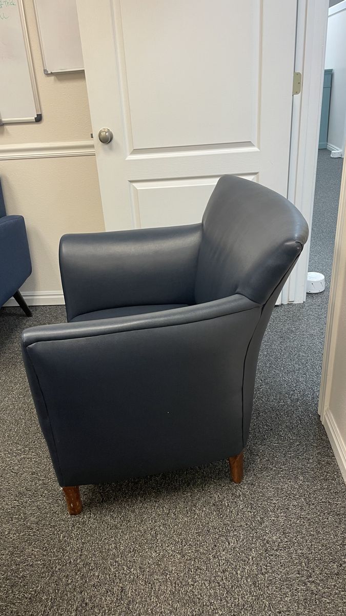 VenmoGreat condition-- we just have been changing our office up and this isn't fitting with the new design we have for our offices. There are 2 blue chairs. Selling the leather one for $35 and the other one for $25. or $45 for both of them. Let me know!