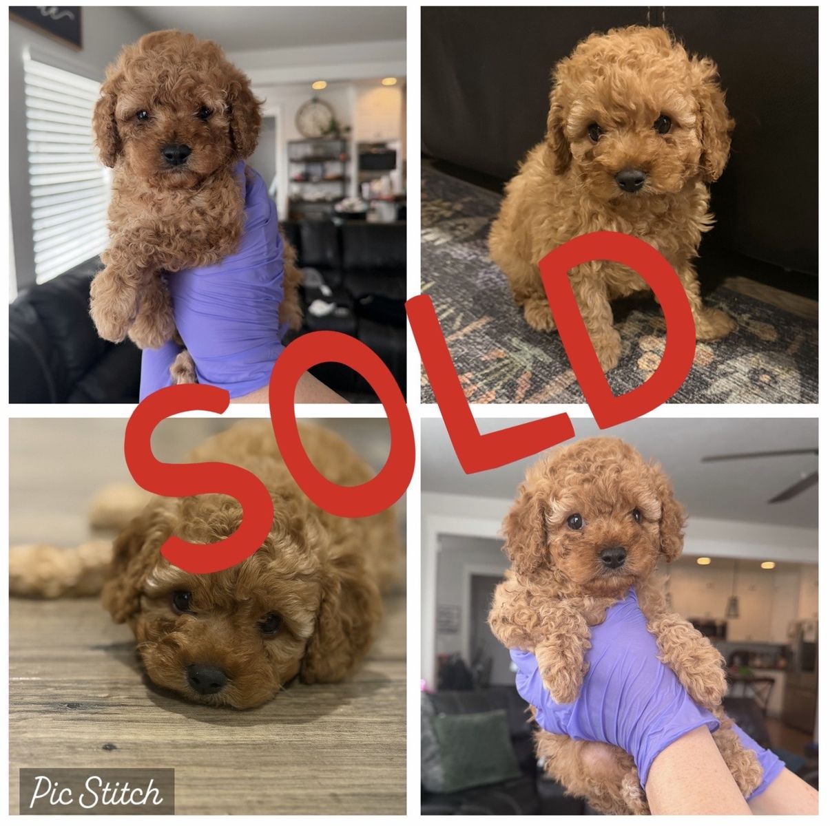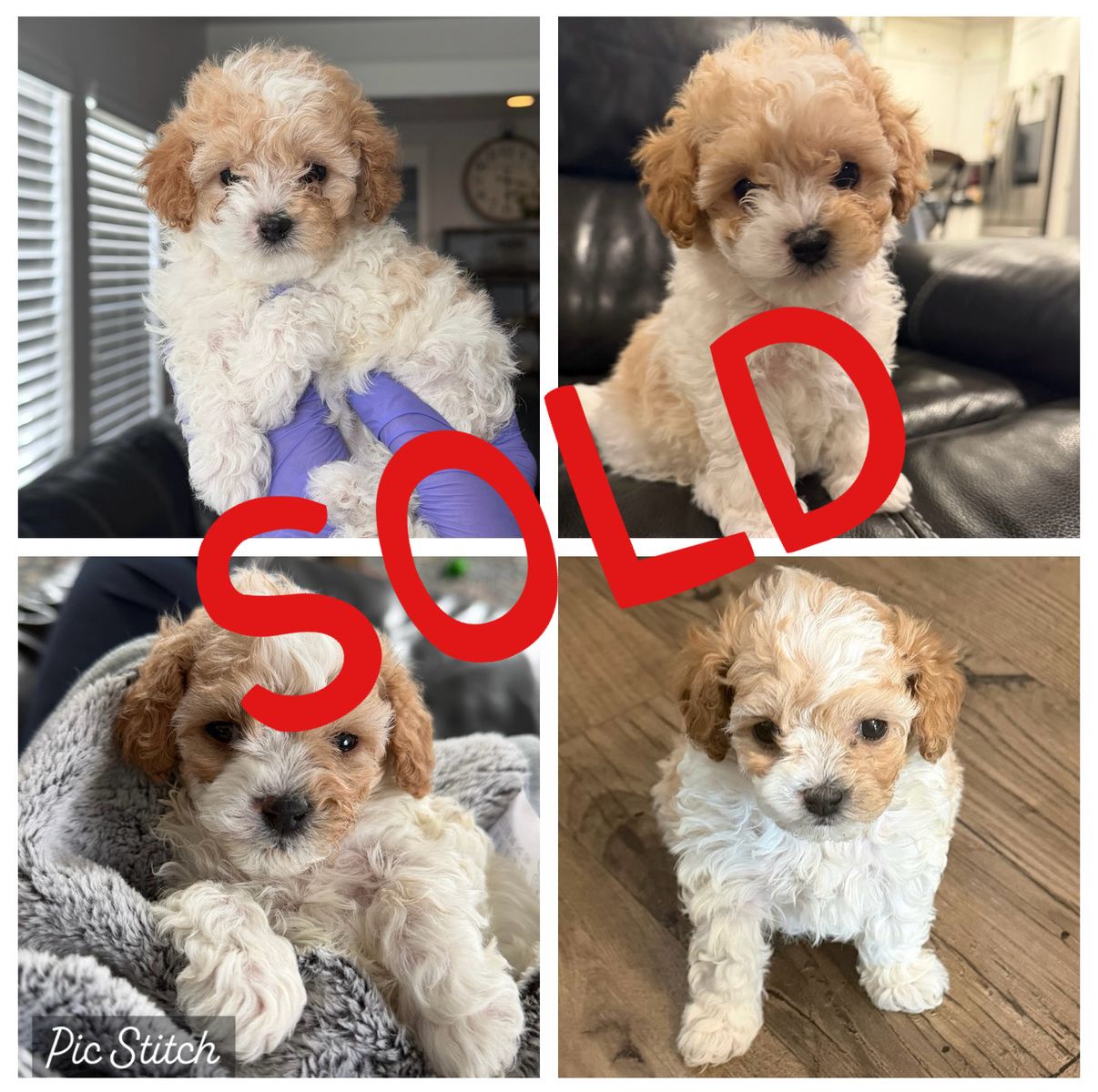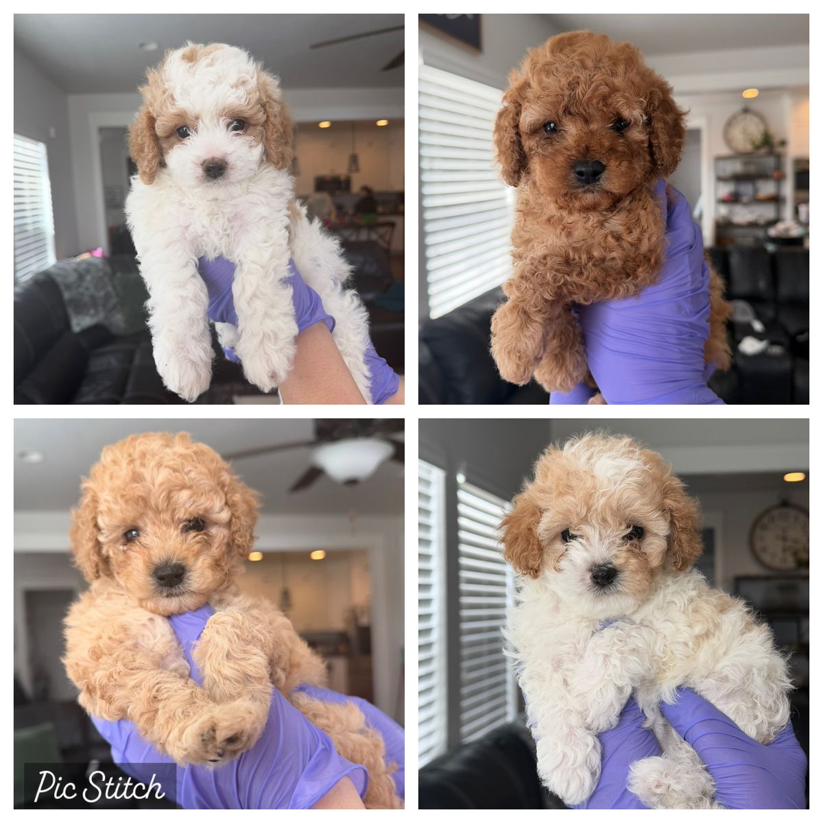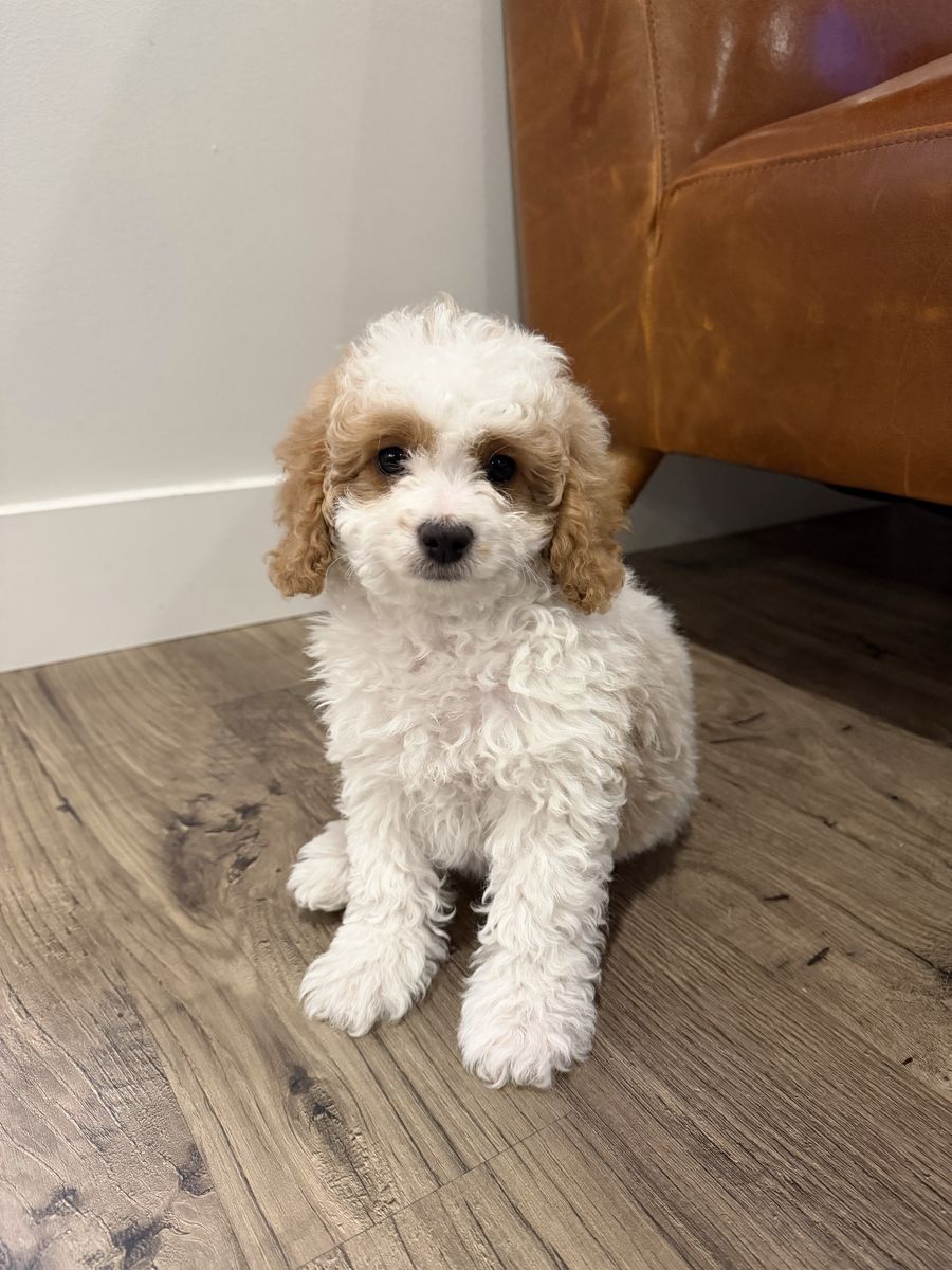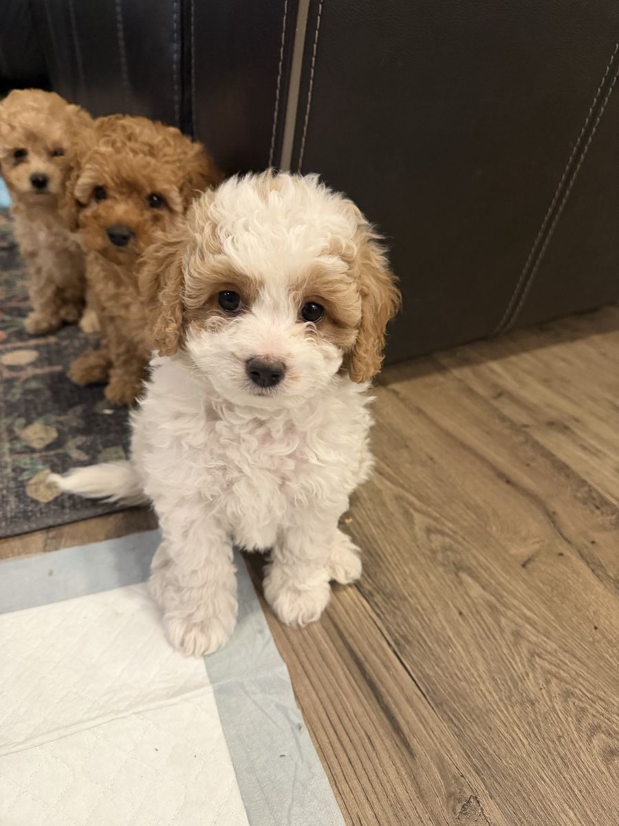 Mom is a 22 pound F1 B Cavapoo and Dad is a 4 pound Poodle. Puppies are expected to mature in the smaller mini range, approximately 10 to 16 pounds. These puppies are being raised in our home and handled daily. They are well socialized and used to normal household activity.