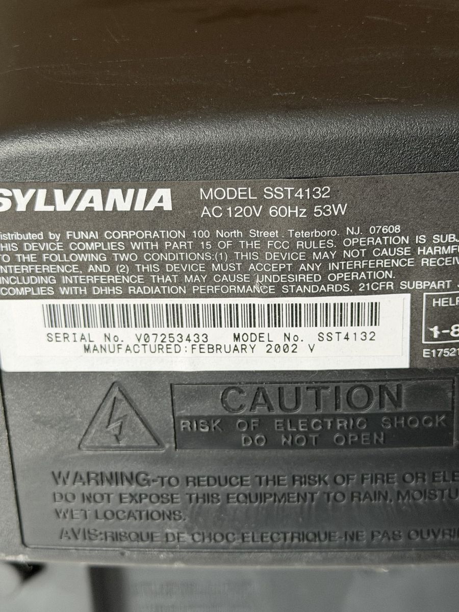 ZelleAre you looking for that classic 2000s look? This 13-inch Sylvania CRT TV has a built-in digital tuner, and is the perfect compact size for a kitchen, dorm or kid's room. It's also a fantastic choice for retro gamers (NES, SNES, N64 or PS1/PS2) because it provides that authentic zero-lag experience that modern flat screens can't match. Manufactured in February 2002. Excellent cosmetic and working condition, with a bright picture and colors are sharp. Inputs [Front/Back] Composite A/V (Red/White/Yellow) and Coaxial (RF) input. Very compact and portable with a built-in handle - easy to move around.