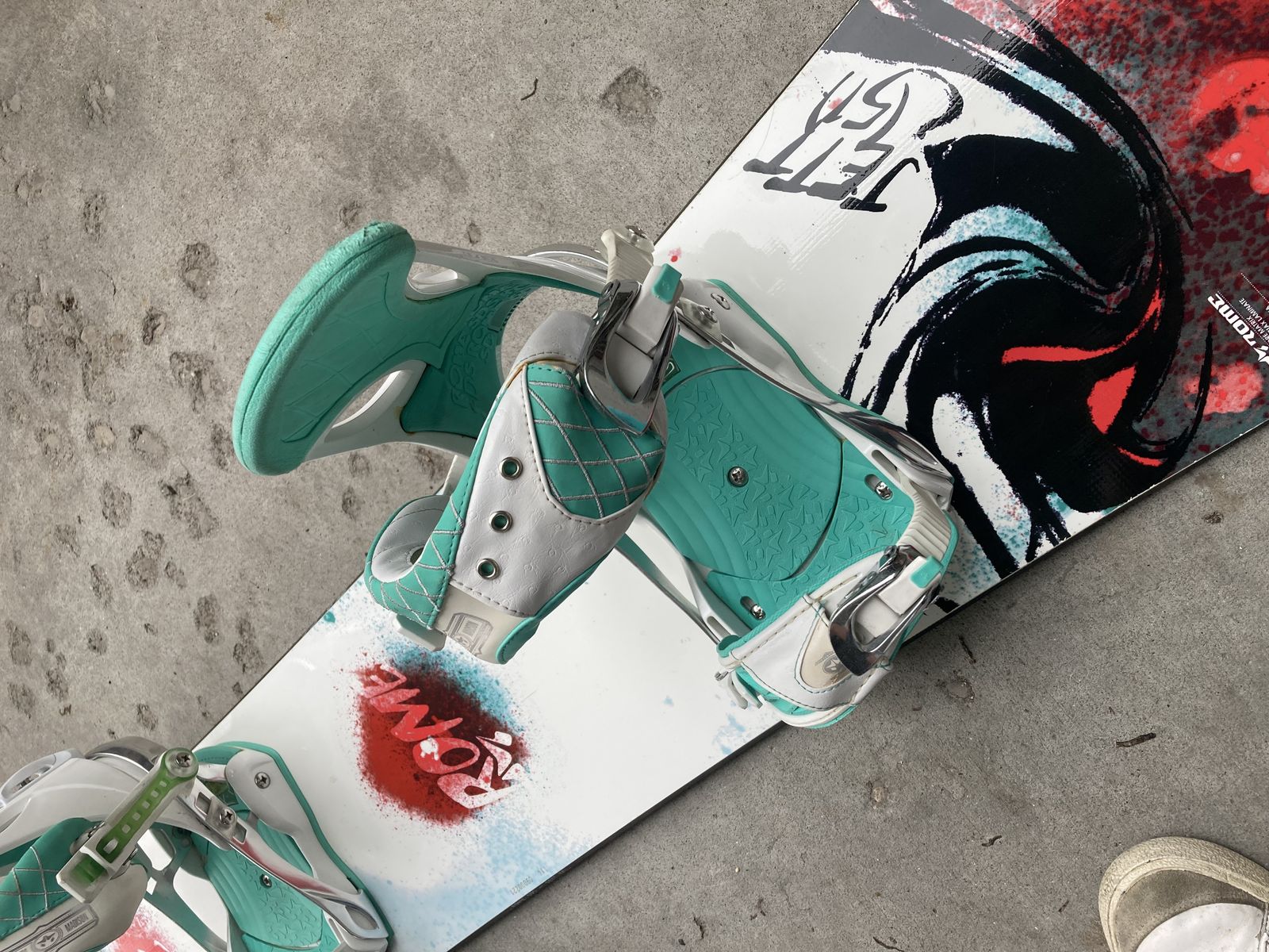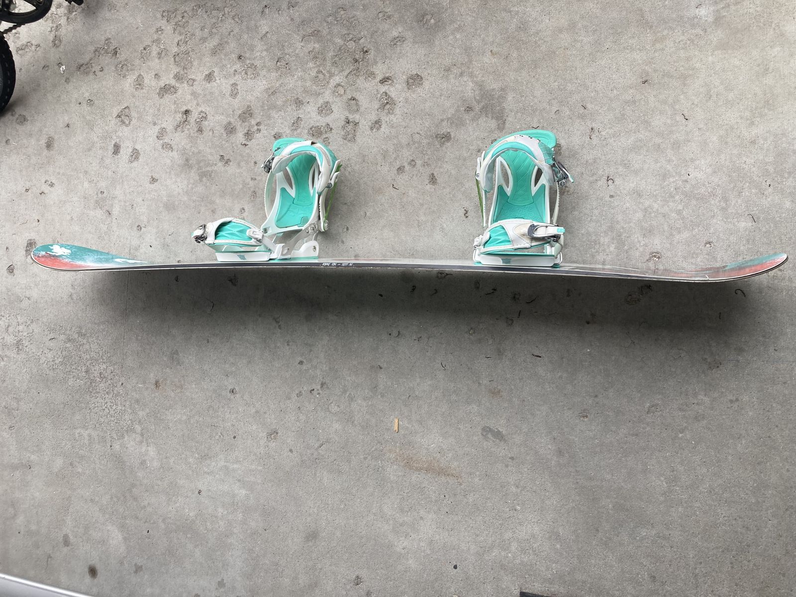 Great condition Board is in great shape nothing wrong with it , bindings have no damage and work as they should .