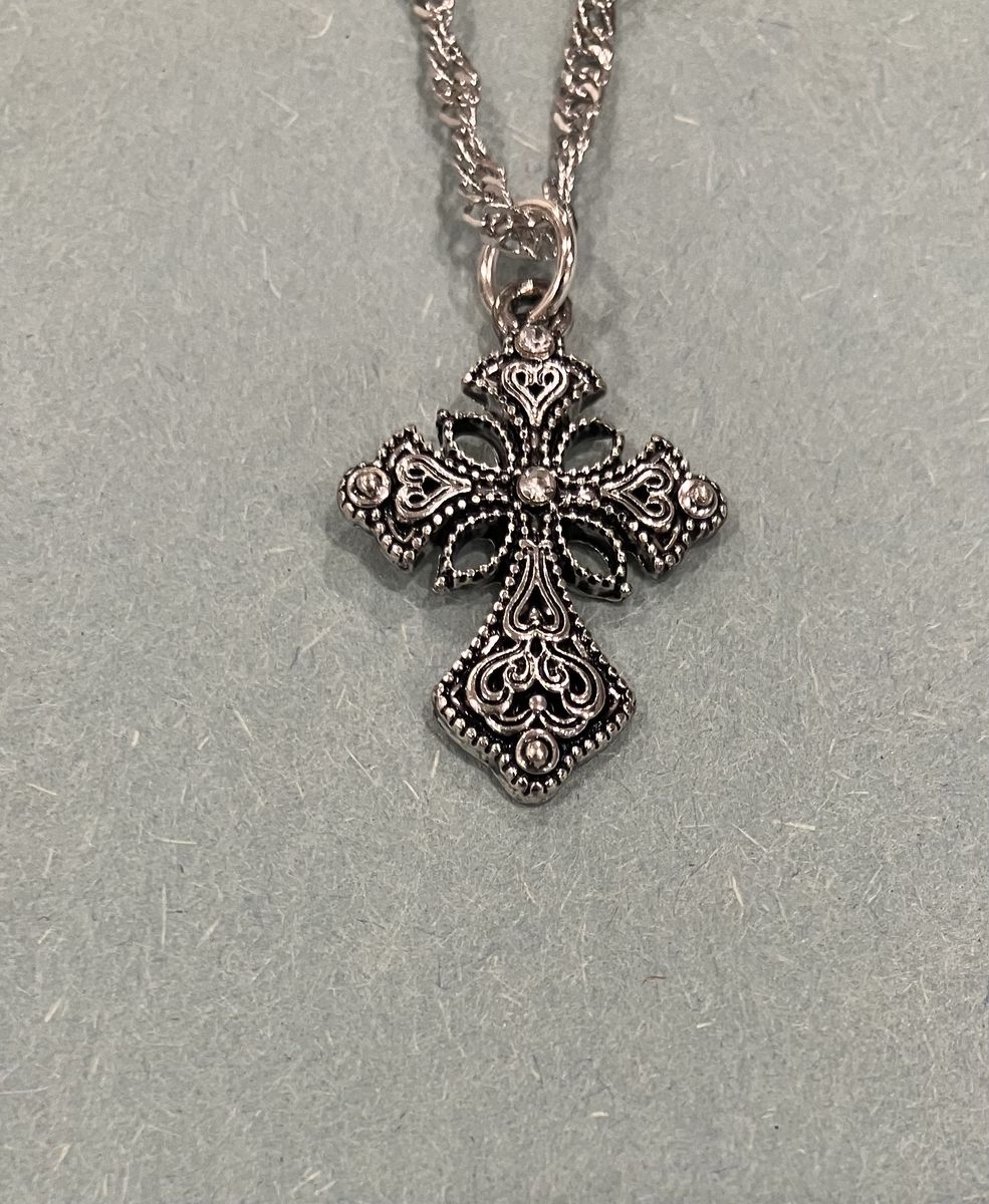 VenmoSilver toned gothic style ornate cross pendant on a nice 18 inch long stainless steel chain. Gift box included. Local meetup or can mail with ship fee.
