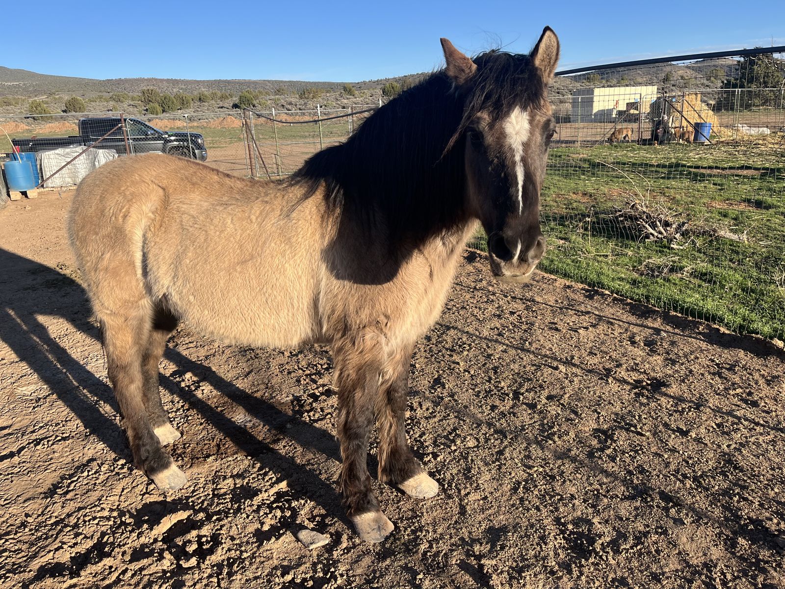 18 year old grulla mustang mare. (Not branded) She’s been used on many trails, been roped off of (but just a bit in the arena) crosses everything. She’s 14hh and very thickly built. She slicks off nicely to a pretty silver grulla in spring. She has a very thick mane and tail. She’s solid and doesn’t require any maintenance. Very easy keeper. She can be turned out or stalled. Not the top or bottom horse. Not a bit mare-ish. She’ll ride out alone or in a group and just follow along. She’s been my son’s horse, but he’s outgrown her. Would make a great step up horse or for a lady. She has very hard feet and doesn’t require shoes. I ride her bare foot. Needs trimmed right now. We’ve only really used her on trails. No real arena experience. She is quick for her size and will out walk a lot of horses. No problems keeping up. She has a few quirks I’ll list below. She doesn’t like atv’s or bikes she’ll go sideways to avoid them. Never had her buck. She occasionally gets a bit cinchy. She doesn’t like to be first in the trailer, or can be hard to load sometimes. And she doesn’t like her feet handled. Hasn’t been used for about a year and will need tuned up.