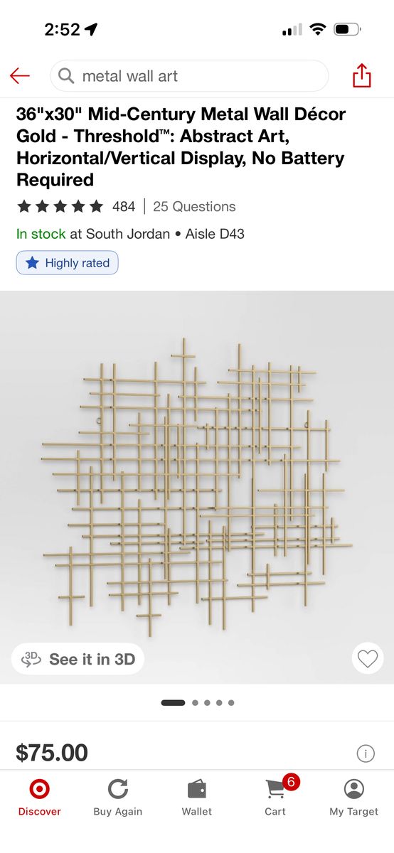 VenmoAbsolutely loved these in my home, but I changed my dining room wall and don’t have space for them anymore. Great condition just a little dusty, can hang vertical or horizontal. Porch pick up only first come first serve no holds located near Herriman cemetery. Pet free smoke free home purchased from target, they still sell the gold ones for $75 each new.