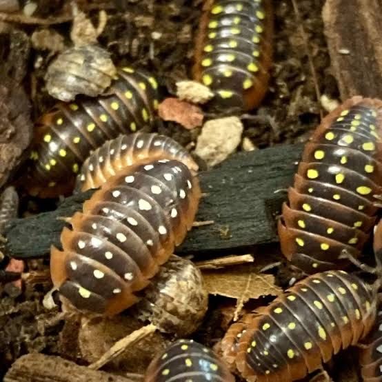 Clown Isopods (Armadillidium klugii) are small to medium-sized, vibrant isopods featuring red, black, and white/yellow spots, famously mimicking the Mediterranean black widow spider. As hardy, active, and social scavengers, they are excellent, popular pets for bioactive, semi-arid, or moderately humid terrariums. They require ventilation, regular feeding of leaf litter, and a, 3/4 humid to 1/4 dry, substrate gradient.