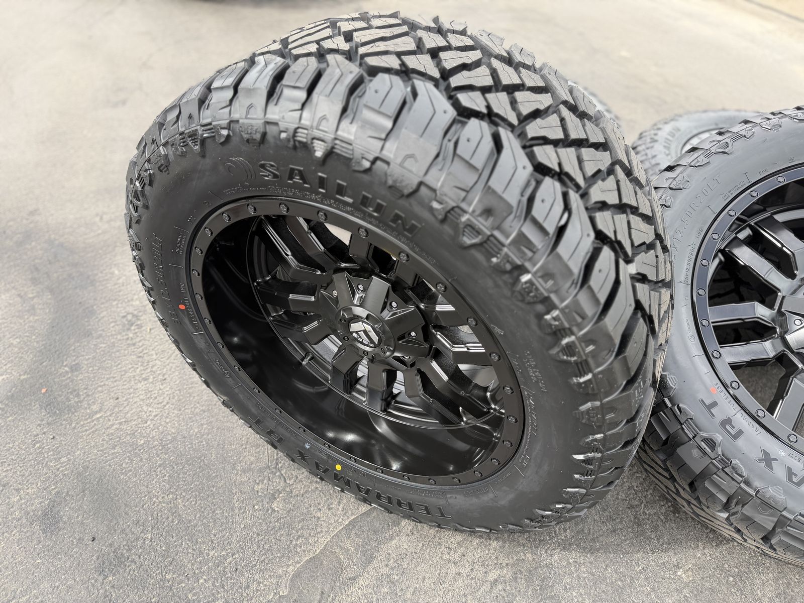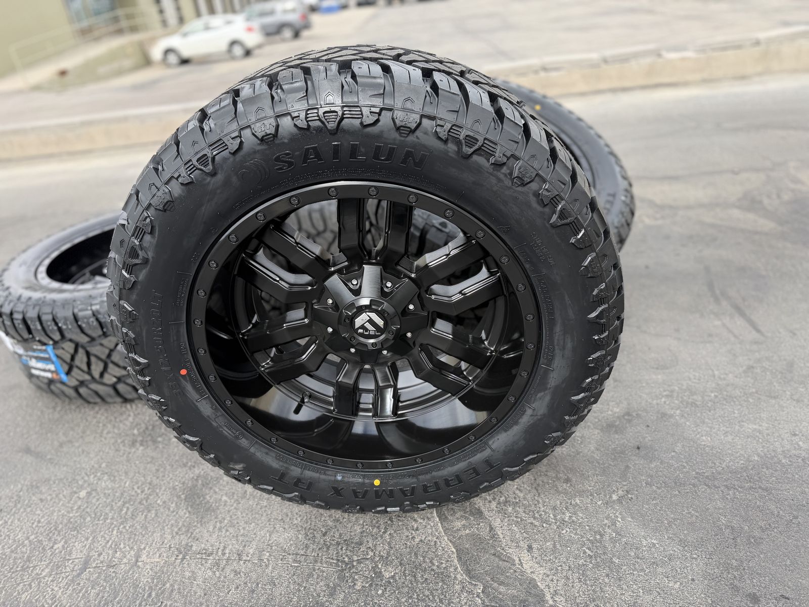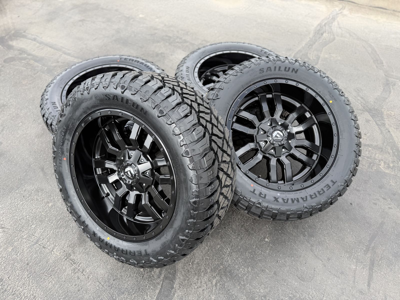 ApplePayBrand new package! 20x10 Fuel Sledge wheels Gloss Black lip satin spokes. -18et offset. Mounted and balanced on new 33x12.50r20 Sailun Terramax RT. 6x5.5 (6x139.7) and 6x135 bolt patterns. These fit chevrolet silverado 1500 GMC Sierra Nissan Titan Toyota Tacoma and 2004+ Ford F-150 and expedition. They also fit newer ram 1500’s, 2019+ Ford Ranger as well as nee body style Ford Broncos. Huge Savings! Call or txt 435-760-1194