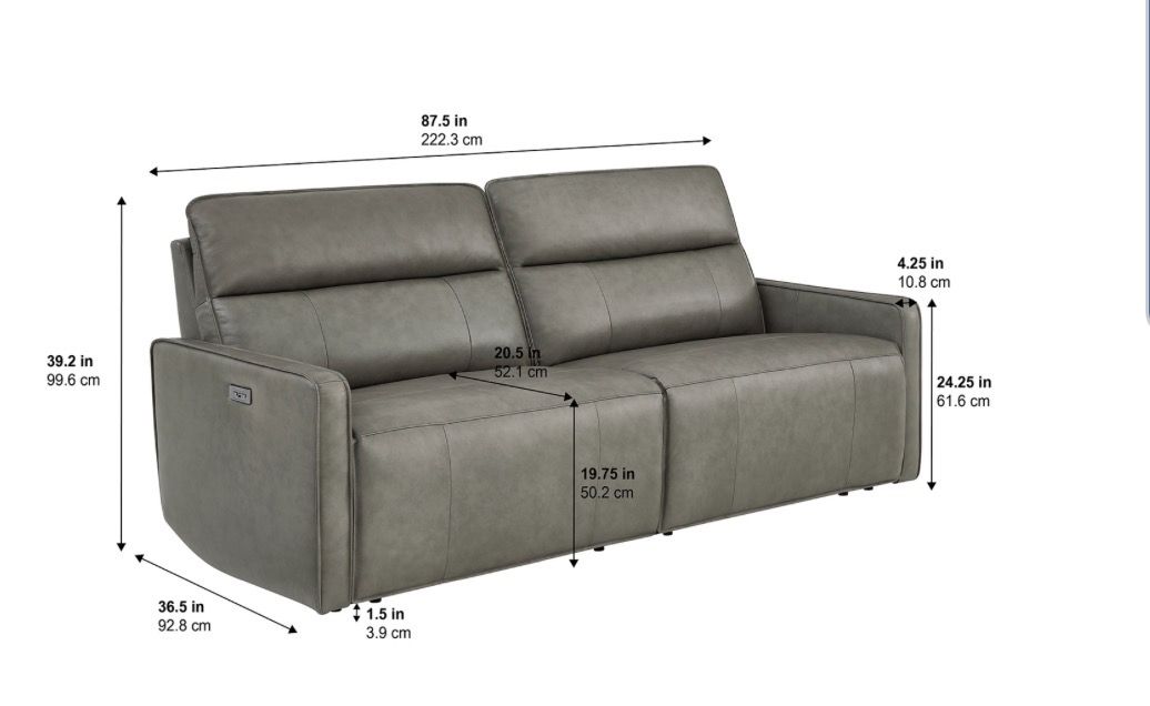 Top-Grain Leather with Polyurethane Match Dual Zero-Gravity Recliners for Personalized Comfort Power Adjustable Headrests on Both Seats Pad-Over-Chaise Design for Seamless Support Built-in USB-A and USB-C Ports