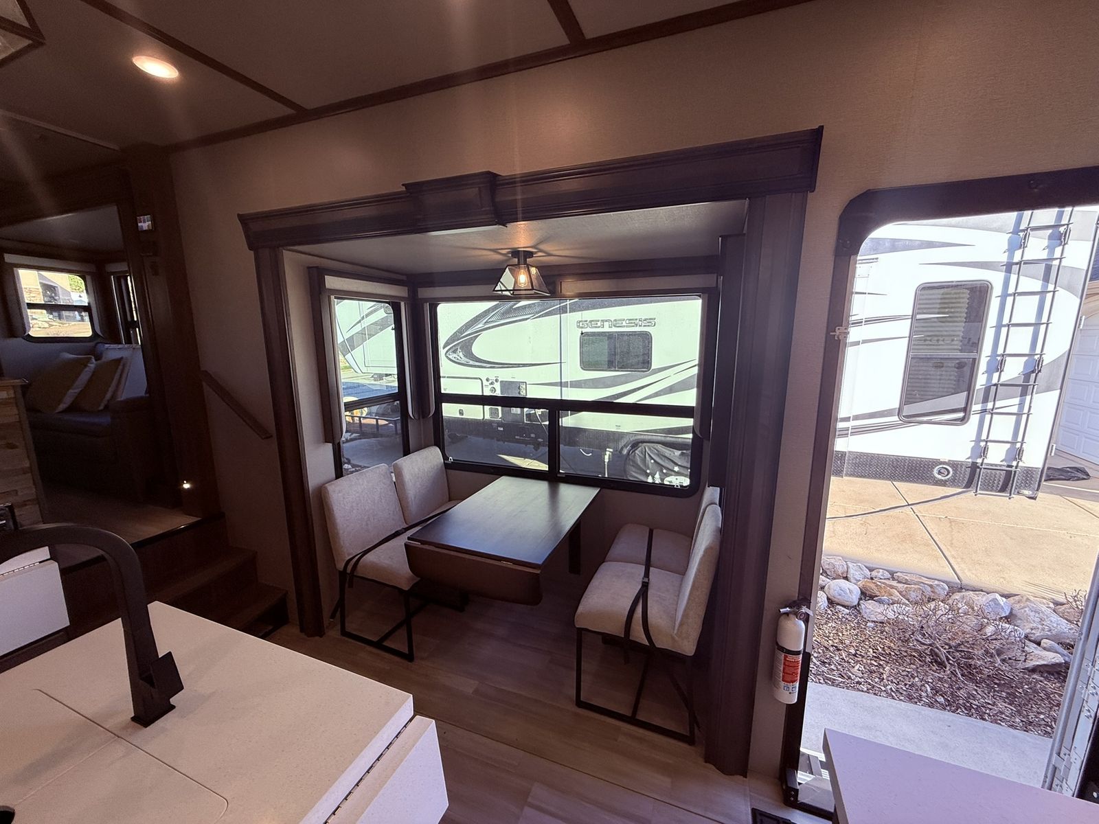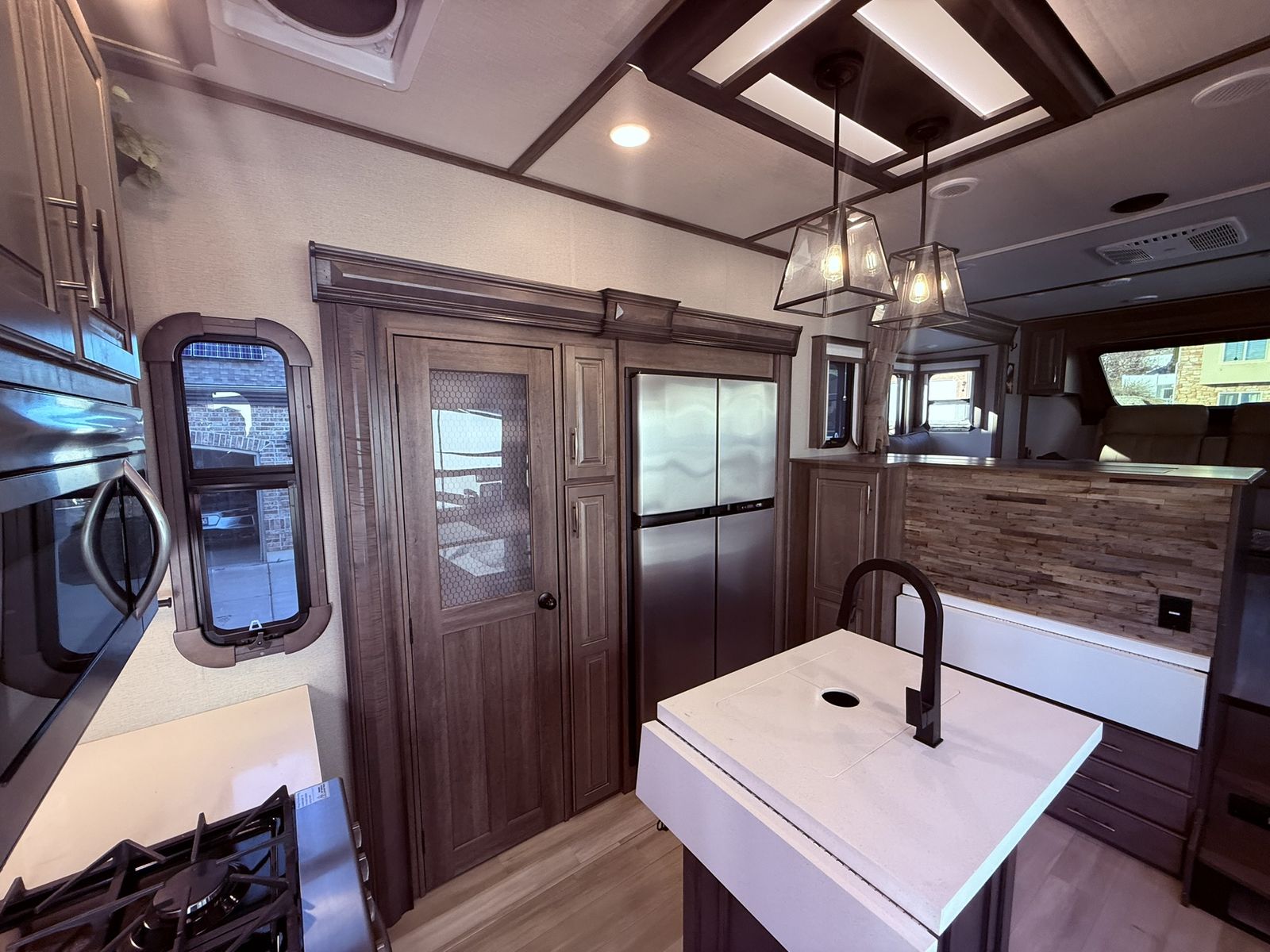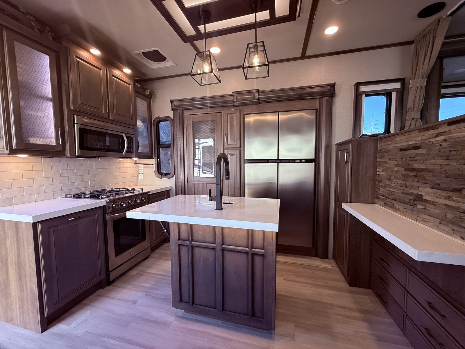 The Solitude RV delivers taller ceilings, taller, deeper cabinets, larger scenic window areas, a full 6' 8" tall slide-out, and a body width that measures a full 101 inches!