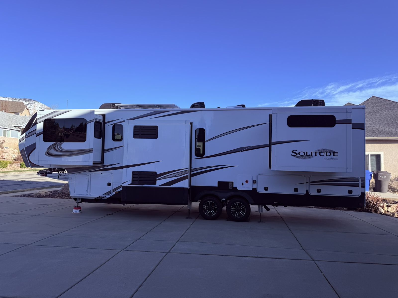 The 2022 Grand Design Solitude 346FLS has approx. 6000 miles on the odometer, this The Grand Design Solitude is known for its commitment to quality and innovation. You must see this RV to appreciate all the extras that are included. Please see features and specs for details. I have added over $20,000 of additional equipment and extras on/in this RV.