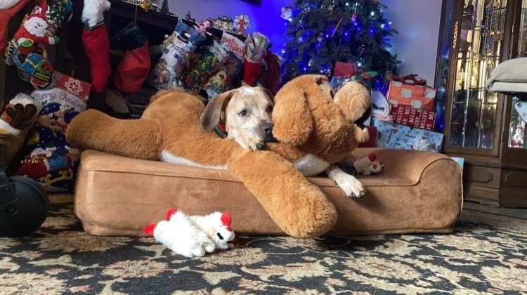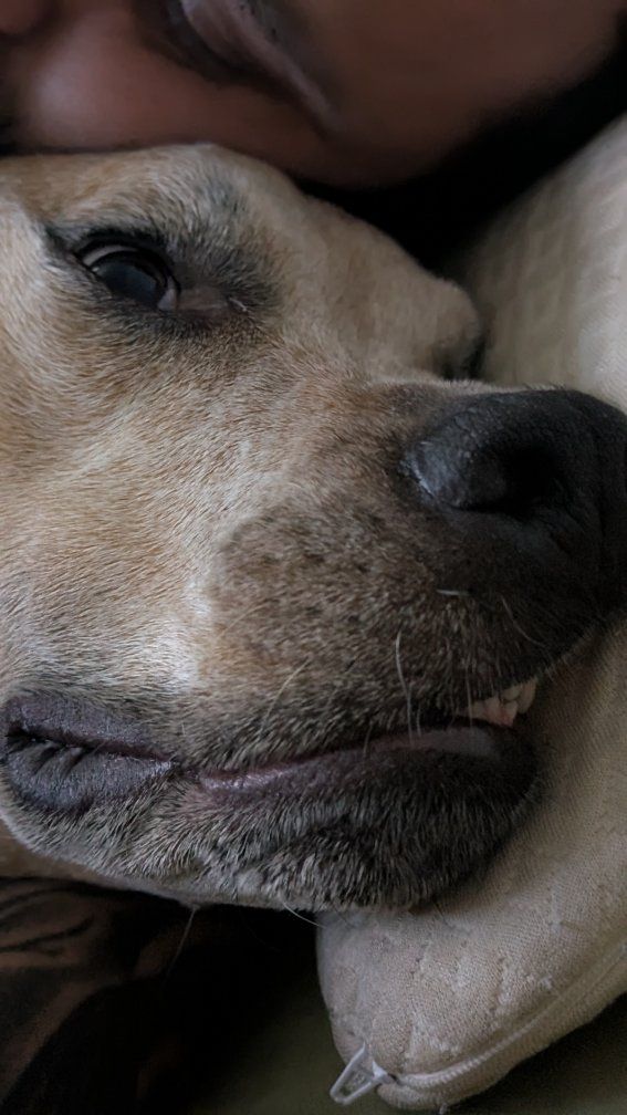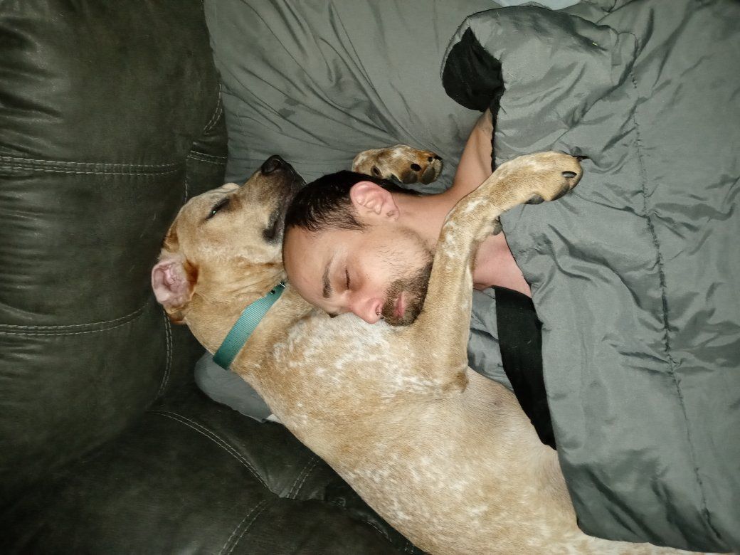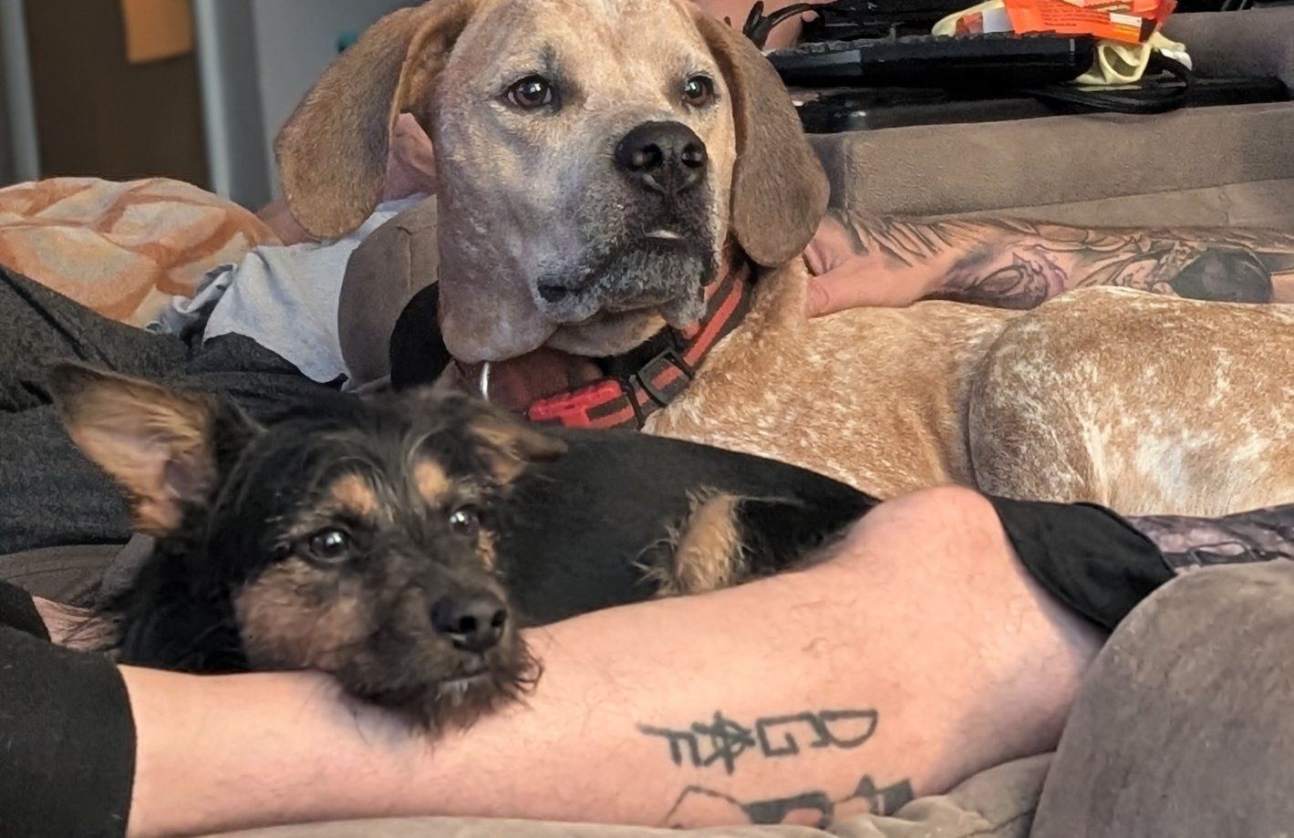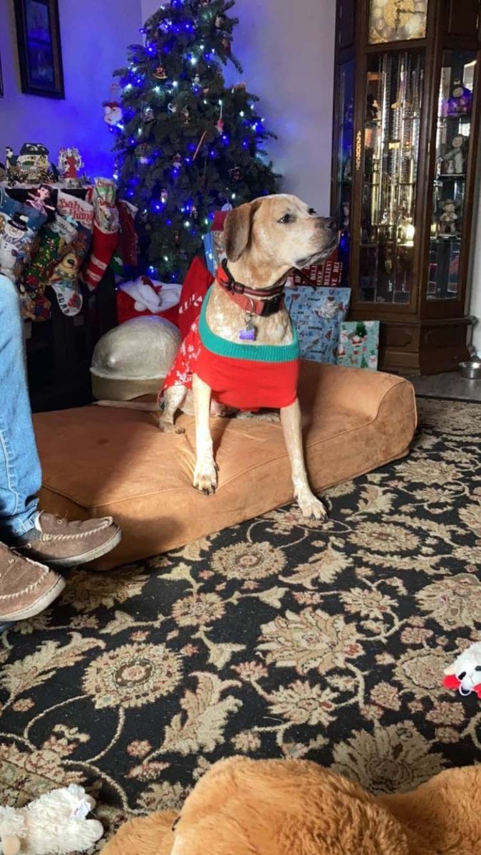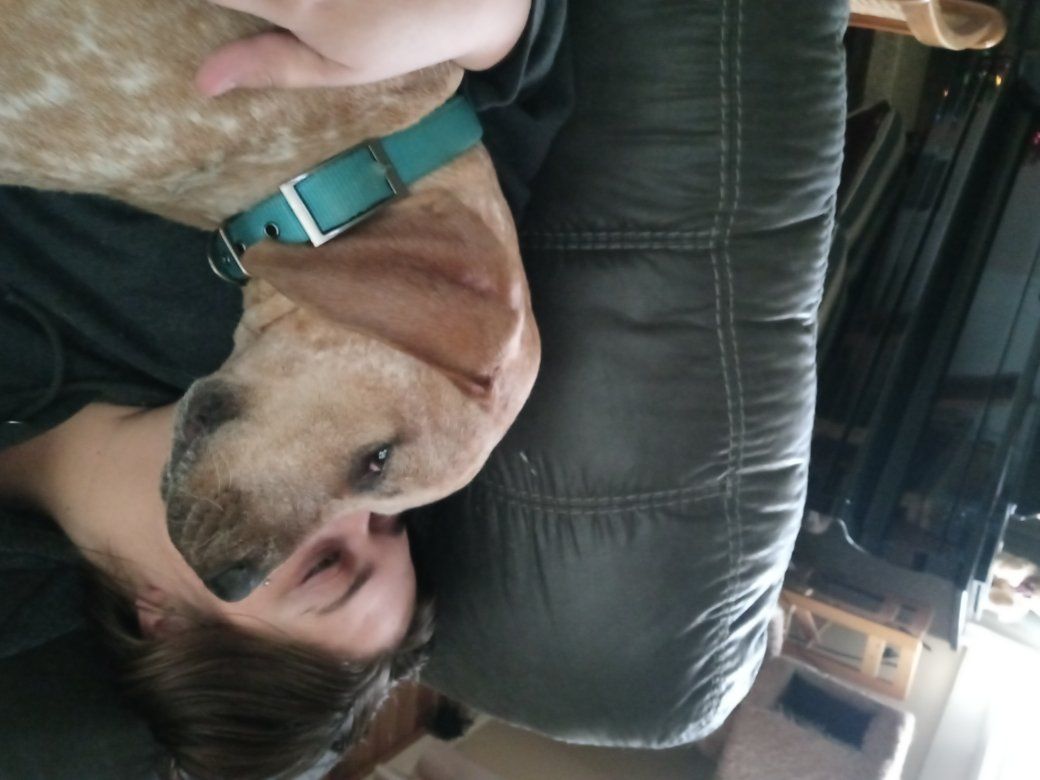 Copper just turned 6 years old in February, he is half blue tic hound and half American bulldog. He weighs approximately 75lbs. He is a big baby who loves cuddles and blankets. He is potty trained, kennel trained, fixed, and knows tricks. He grew up in a house of people who are disabled so he's lazy and calm. He doesn't get walked very often so doesn't do well on leash. He is an escape artist so a fenced yard would be preferred. He has some anxiety but I honestly believe that is because he doesn't get to really go out much. He loves Christmas and will open his gifts. He is trained to the beep of a shock collar but we only ever use the beep.