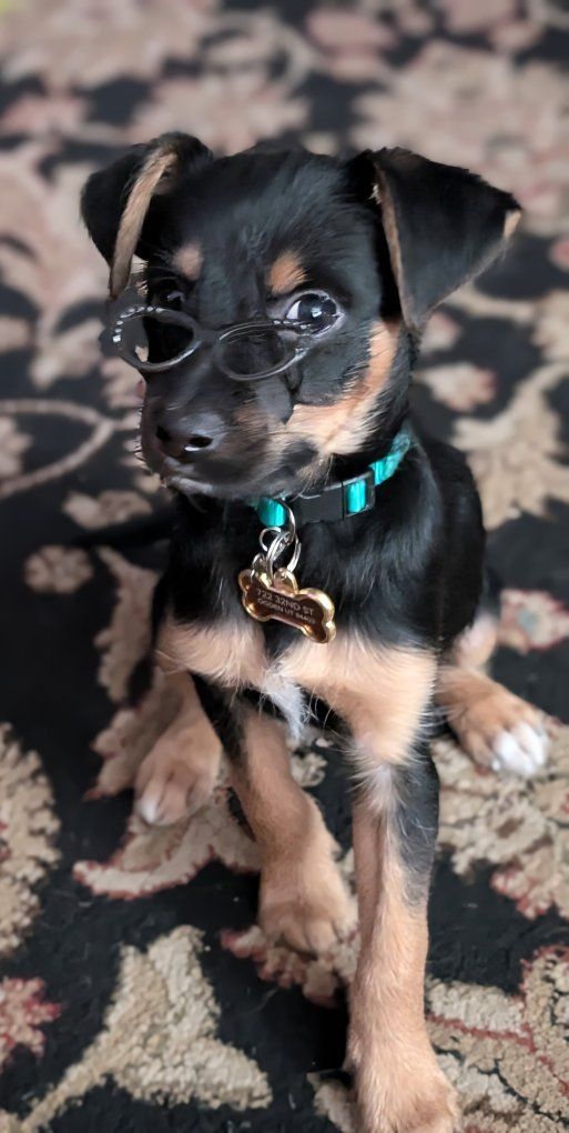 Cujo is our little man. He weighs approximately 16 lbs. We were told he was Chihuahua but as he got older we see more terrier. He will be 2 years old in September. He thinks he runs things including Copper. He loves cuddles, car rides, and staying close to someone. He does get motion sickness but enjoys being out. Hes fixed, knows tricks, kennel trained, potty trained. Cujo was also entered on a calendar as a puppy for a donation organization. I was excited about that.