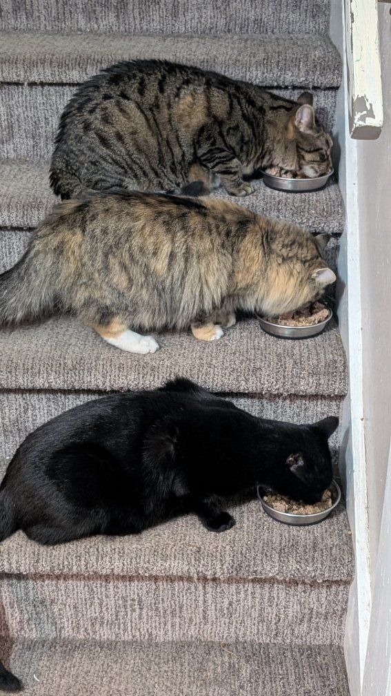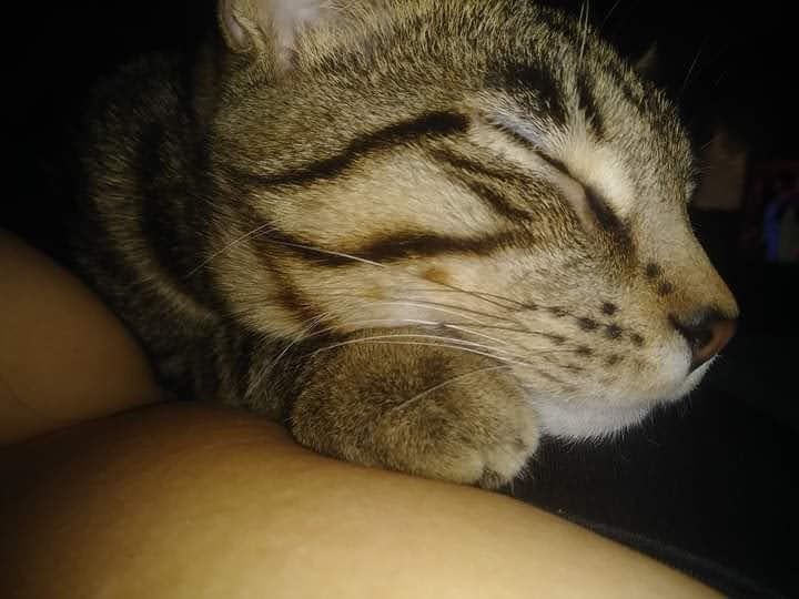 And on to Geoffrey aka the fat man. Geoffrey just turned 8 in February. We have had him since he was 6months. He's fixed, and gets along with other animals including small breed pets. Geoffrey is out lazy liver. He just wants to be in your lap and getting as many pets as possible. The only time I see him run is when he hears his food hit his dish. He is indoor outdoor but he doesn't leave our yard because he's to scared to go far. Of all my cats he is the most quiet and loving. He does not do well in cars. He is litterbox trained, Typically will mind his manners unless you have ice cream.