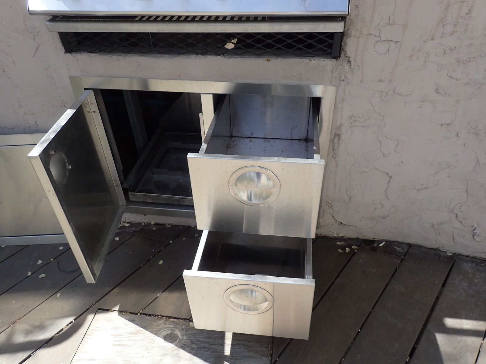 ZelleCabinet faces for bbq island. These cabinets are 302 stainless steel and built by BBQ guys. Excellent quality. Originally purchased for approximately 1500. If you are considering building a bbq grill island, these are an incredible find.