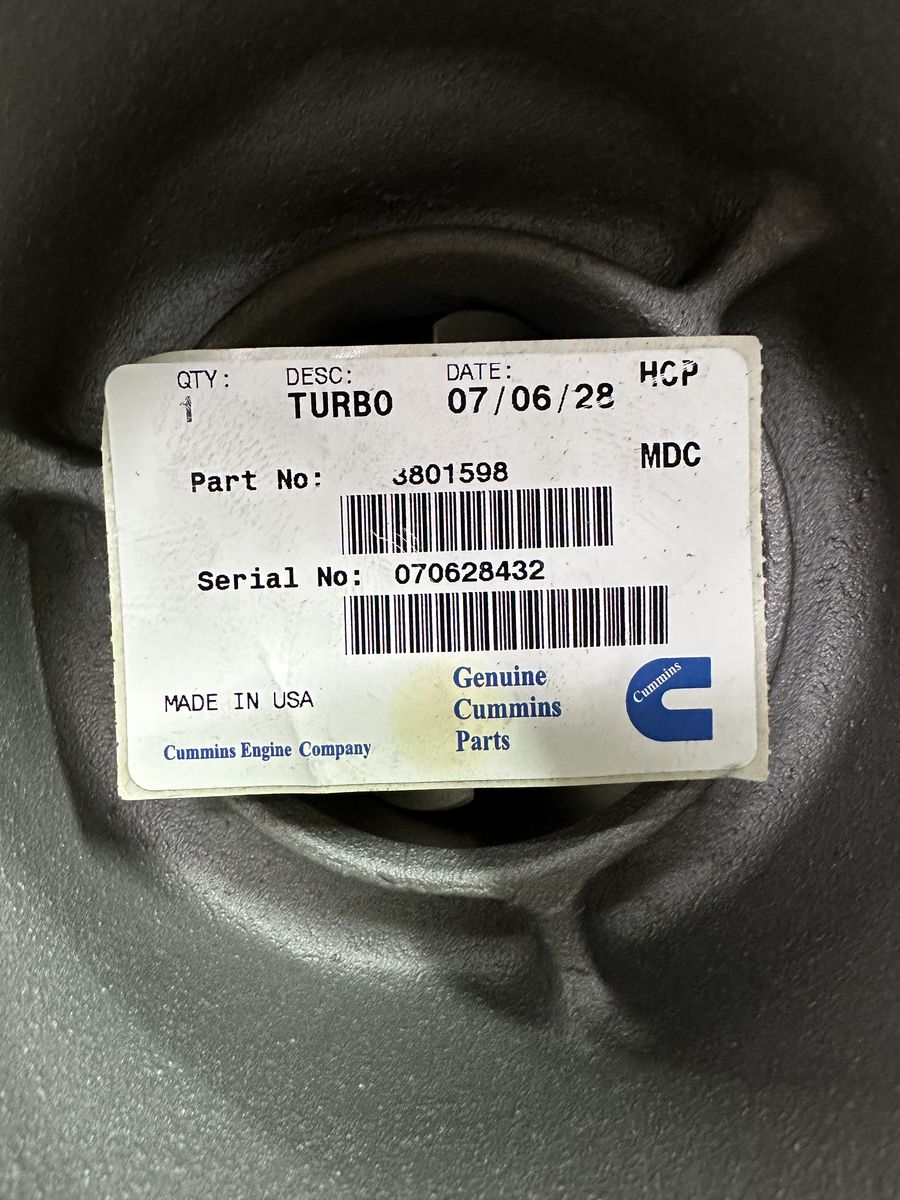 Cummins 14 liter turbo. Part number 3801598 1650 obo