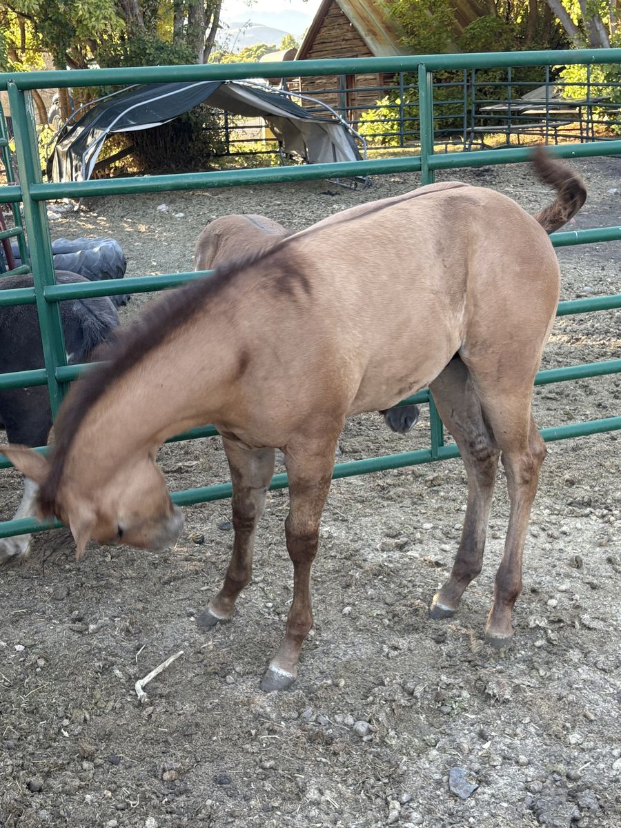 VenmoI have this 2025 Red dun colt for sale. He is grade and will be a yearlong in May. I have had halter on him, lead him around a little and picked up his feet. my Kids have moved away and I don't need any more horses to ride. If interested feel free to call or text thank you. NO SCAMMER!!!