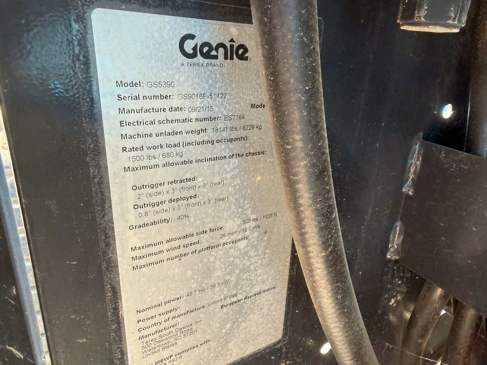 Used Scissor Lift Rough Terrain 4x4 2015 Genie GS-5390RT Diesel 53' Platform Extendable