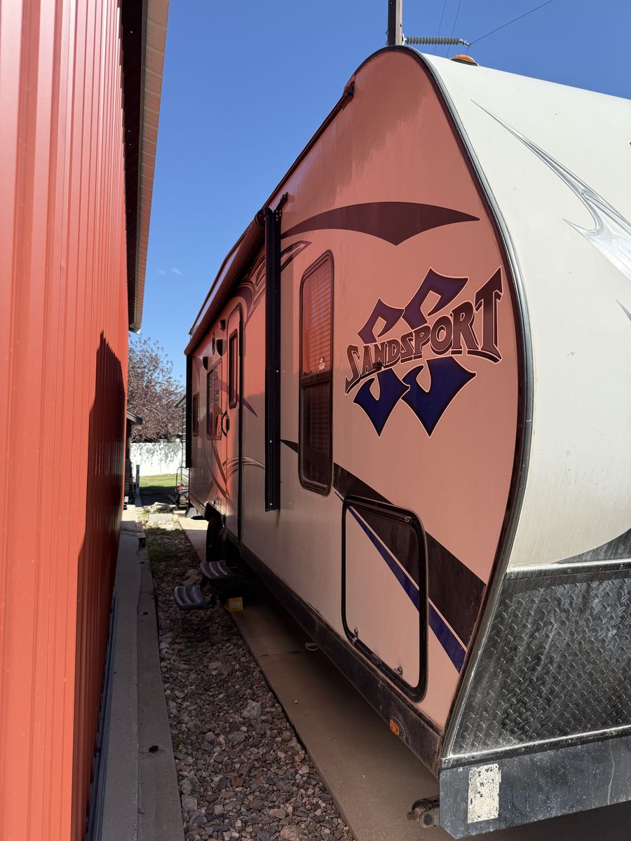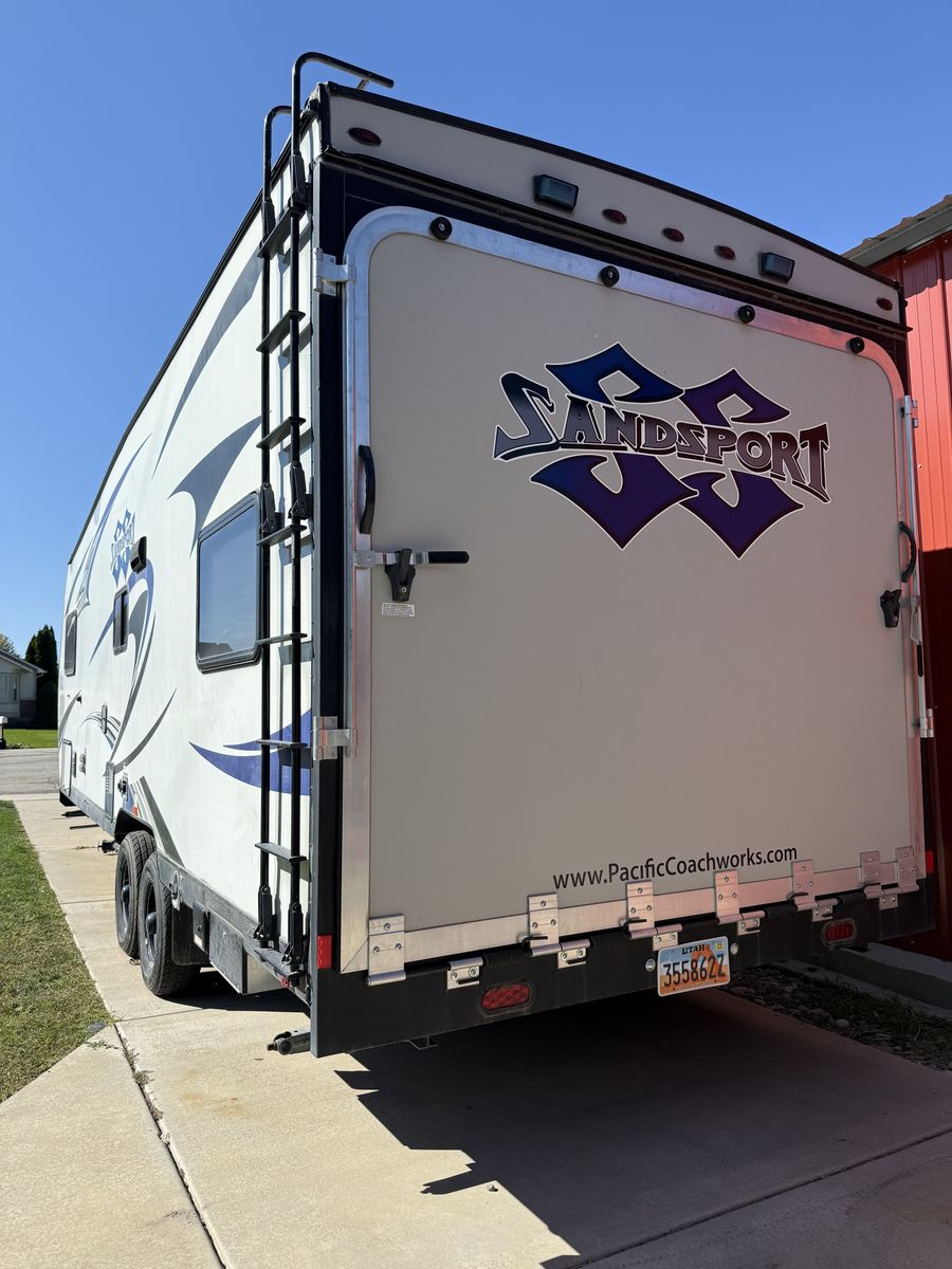 Nice trailer, we have owned it for 4 years. Has on board generator, solar panels, onboard fuel tank, outdoor pressure washer, power awning and powered front Jack, 2 queen beds and two fold down couch beds. Bathroom is also bigger than normal for a trailer this size. New tires purchased last spring, new batteries in the fall of 2024.