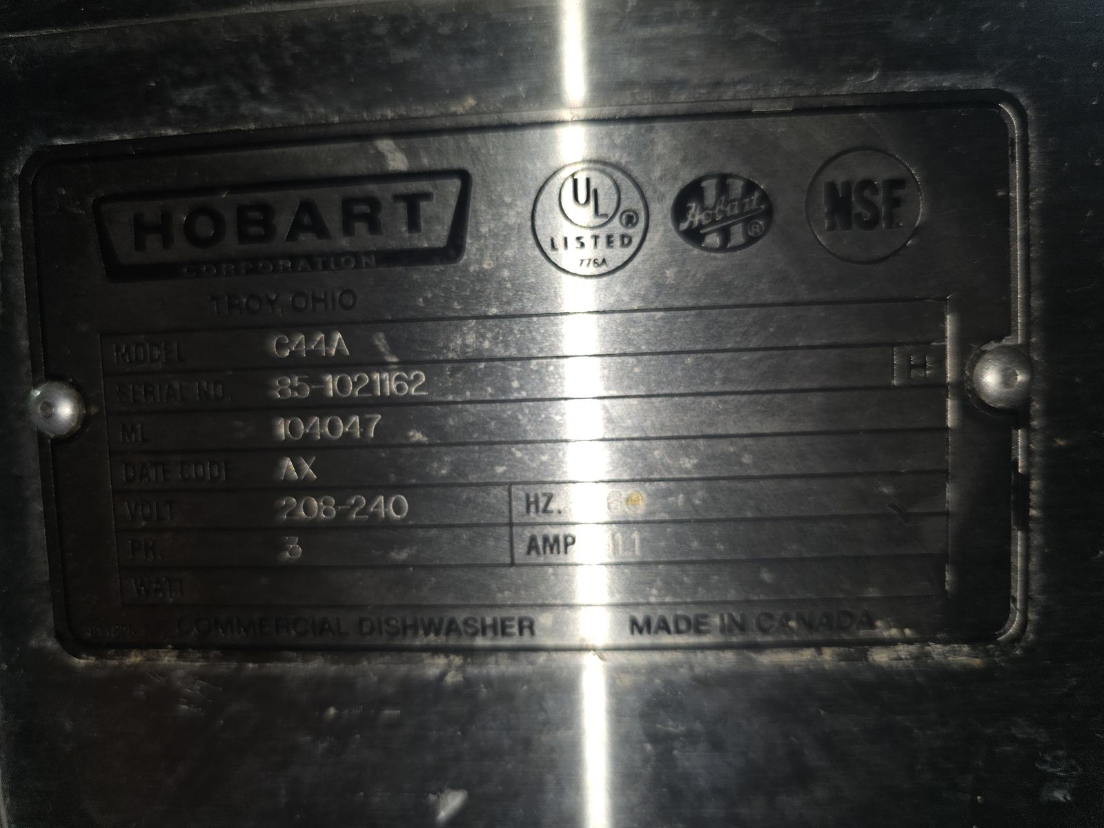 VenmoHobart Double Dish Conveyor Dishwasher