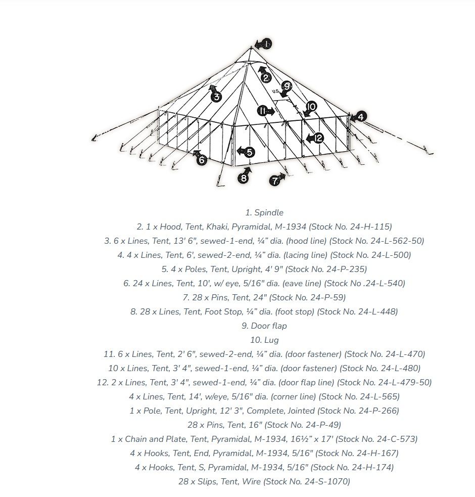 This was the tent that were used as quarters for sailors, airman, marines and troops in the field. Thousands of these tents would make up the majority in what came to be known as "The Company Streets". These tents are authentically made 16'x16'x12' using the well-known odorous treated Od canvas, cotton or manila ropes, authentic metal wire slips, steel center plate, and steel chains, and canvas hood.