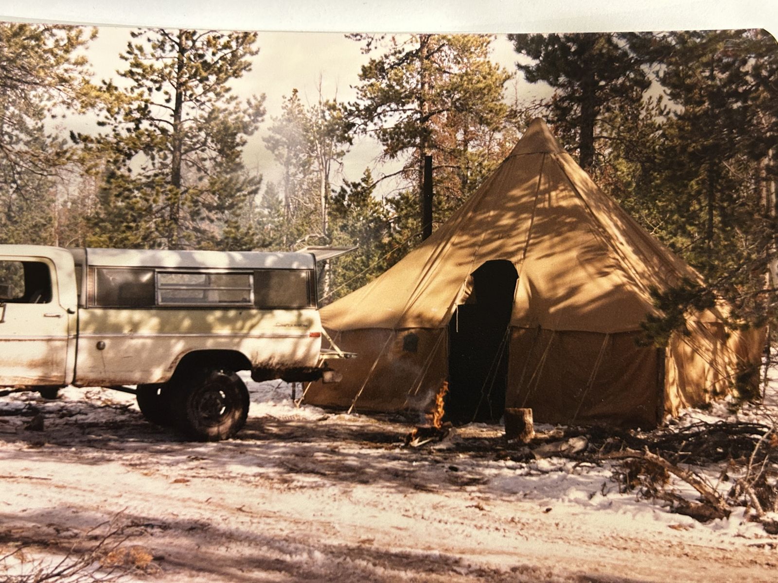 I acquired this about 40 years ago, used it a lot for camping and hunting, at one point we had a wooden stove for heat and there is a metal fascia to protect canvas from the Stoves chimney.