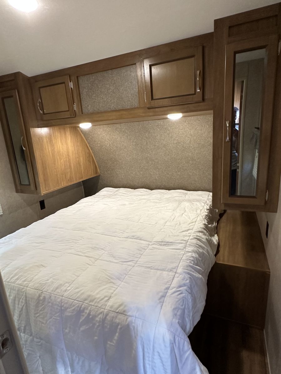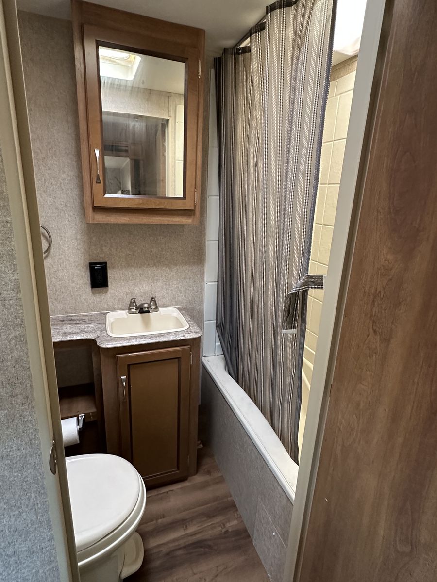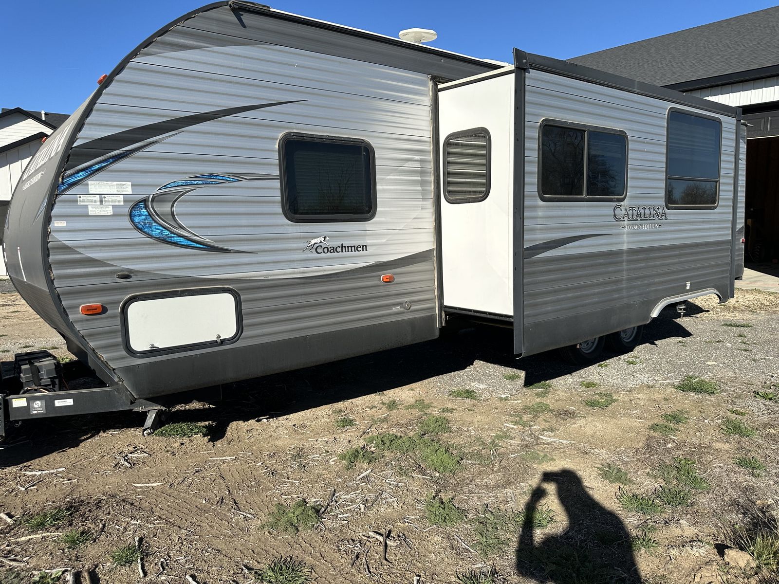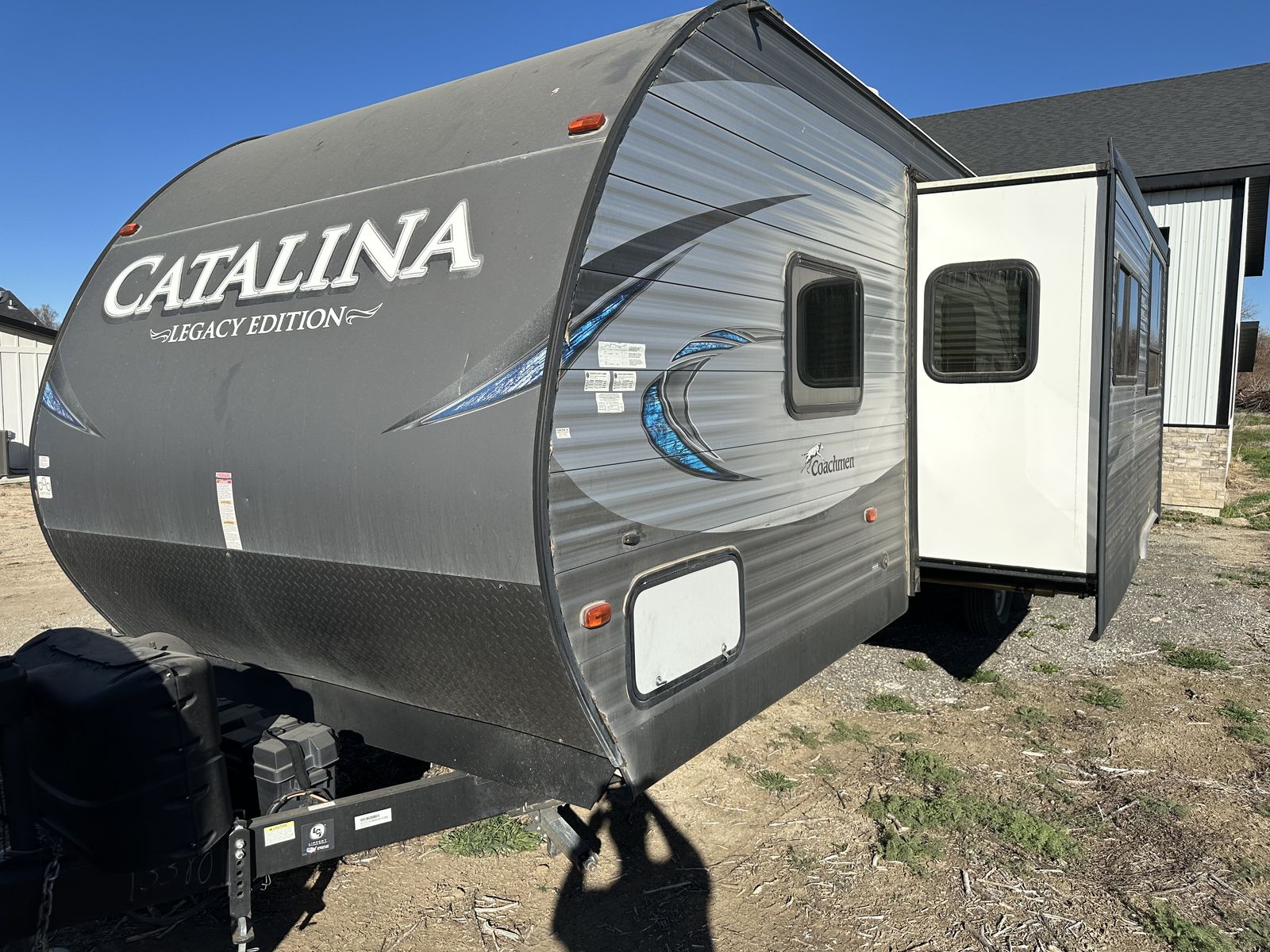 Spacious and family-friendly 2019 Coachmen Catalina 293QBCK travel trailer in great condition. This 33-foot bunkhouse floorplan and features a private bunk room, large U-shaped dinette, queen bed, and a roomy slide-out for extra living space. The trailer also includes an outdoor camp kitchen, large awning, and plenty of storage for trips with family or friends. Dry weight is around 7,200 lbs and overall length is about 33’8”, making it towable with many half-ton trucks.
